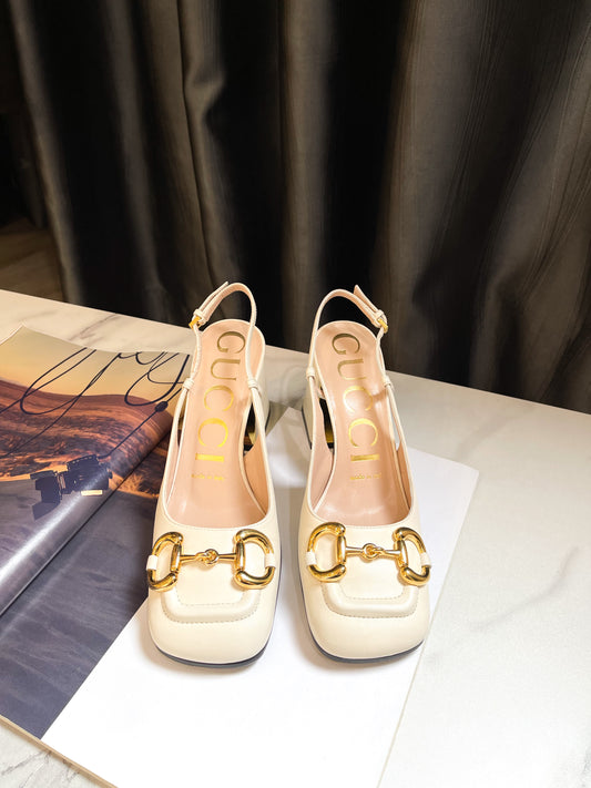 AusverkauftWeiße Gucci Slingback-Schuhe