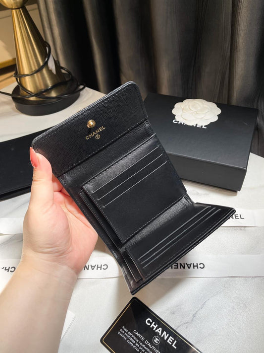AusverkauftChanel Caviar Black Tri-Fold Wallet