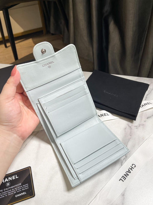 AusverkauftChanel Mint Green Caviar 3-Fach-Geldbörse