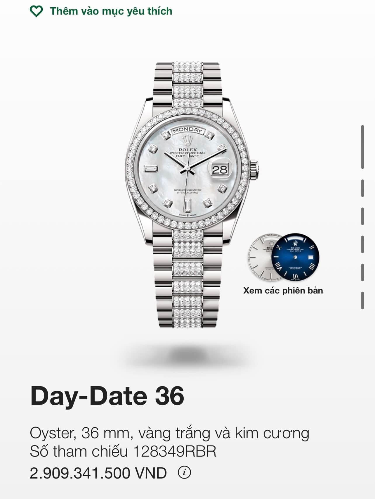 Đồng Hồ Rolex Daydate 128349RBR White Gold