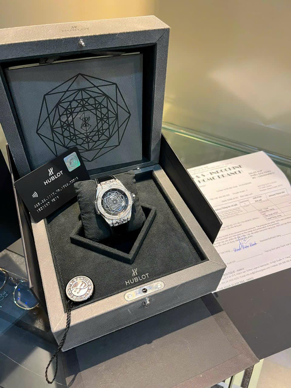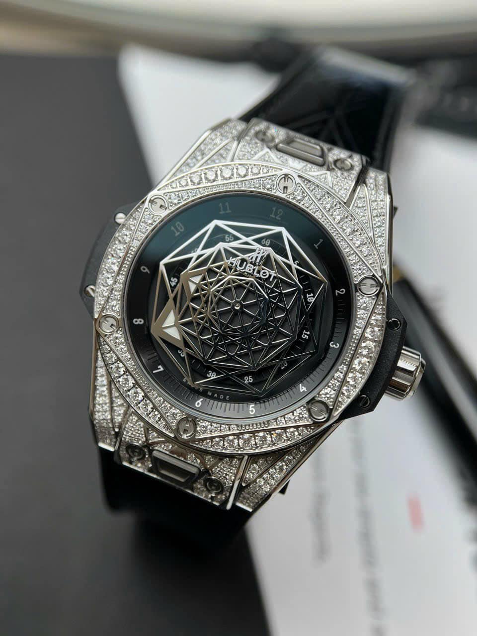 Hublot Sang Bleu 39-mm-Titanversion mit Volldiamanten, super langlebig, 99 % echt, nur 3xx Millionen, Ersparnis von Hunderten Millionen im Vergleich zum Neumodell.