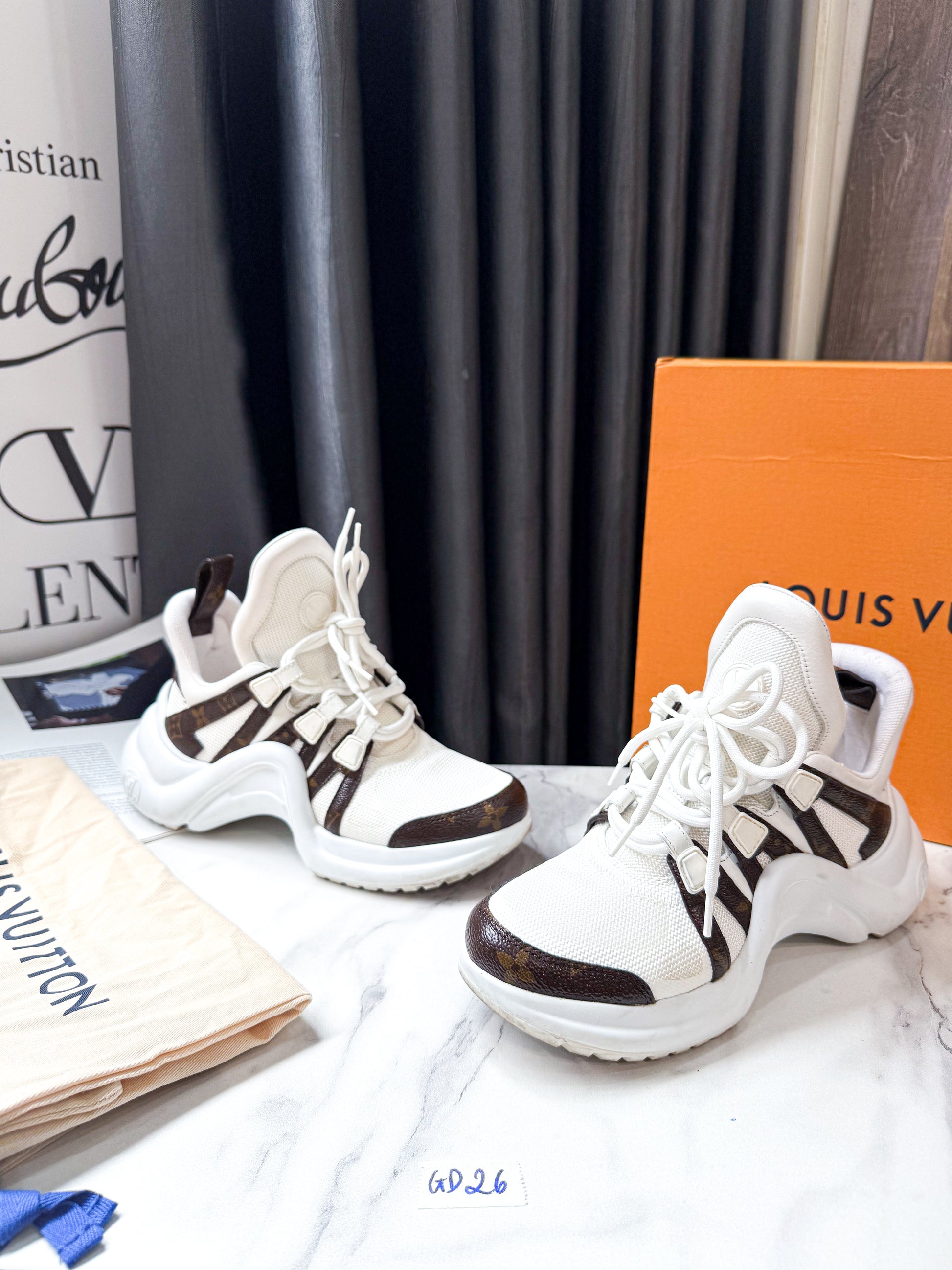 Giày LV Trắng Phối Mono GD26