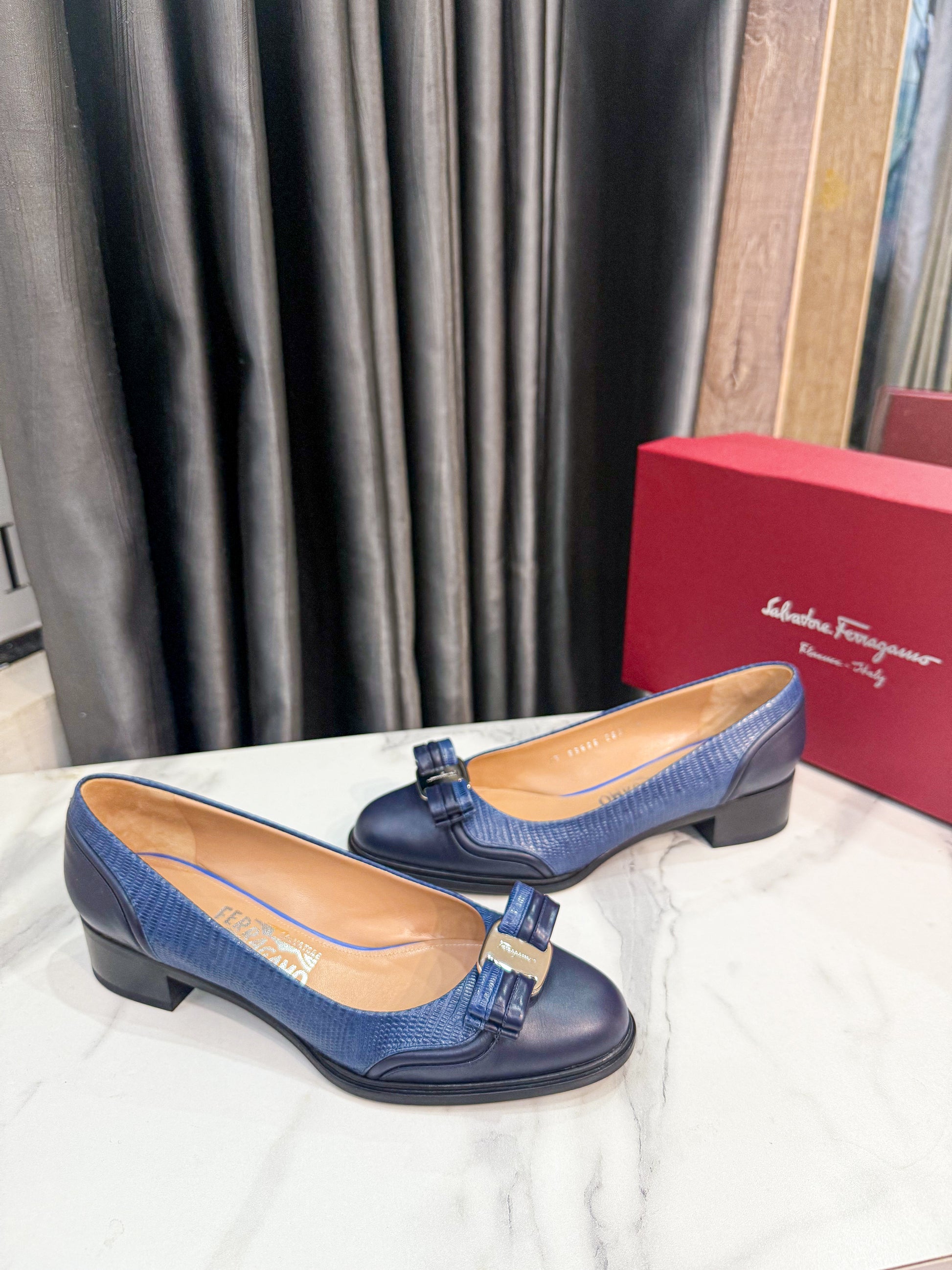 Giày Salvatore Nơ Xanh Size 8C