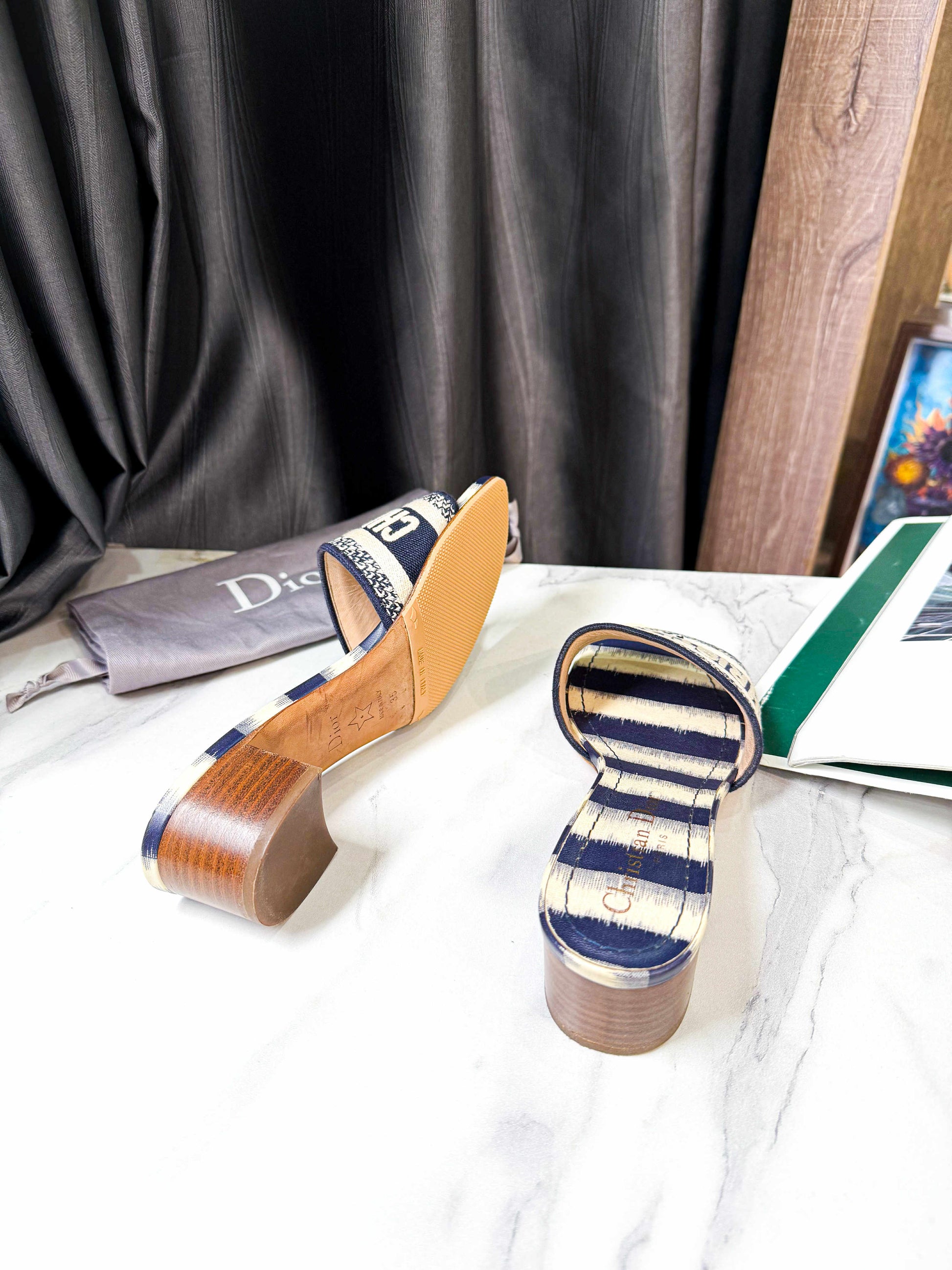 Guốc di.or size 35 hàng trưng bày cho khách đi thử kèm dustbag ạ❤️