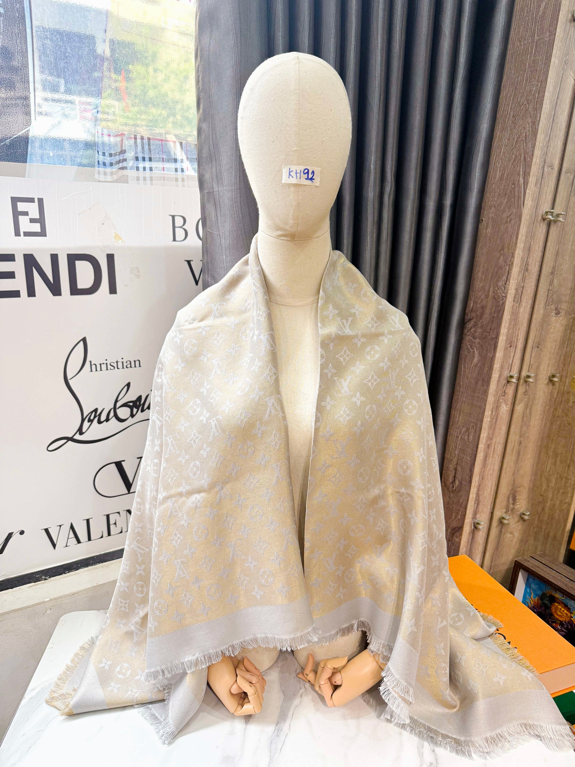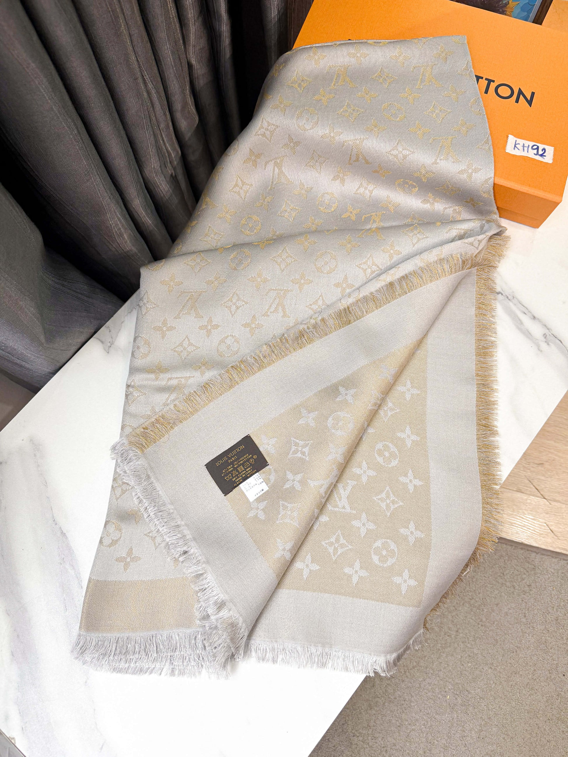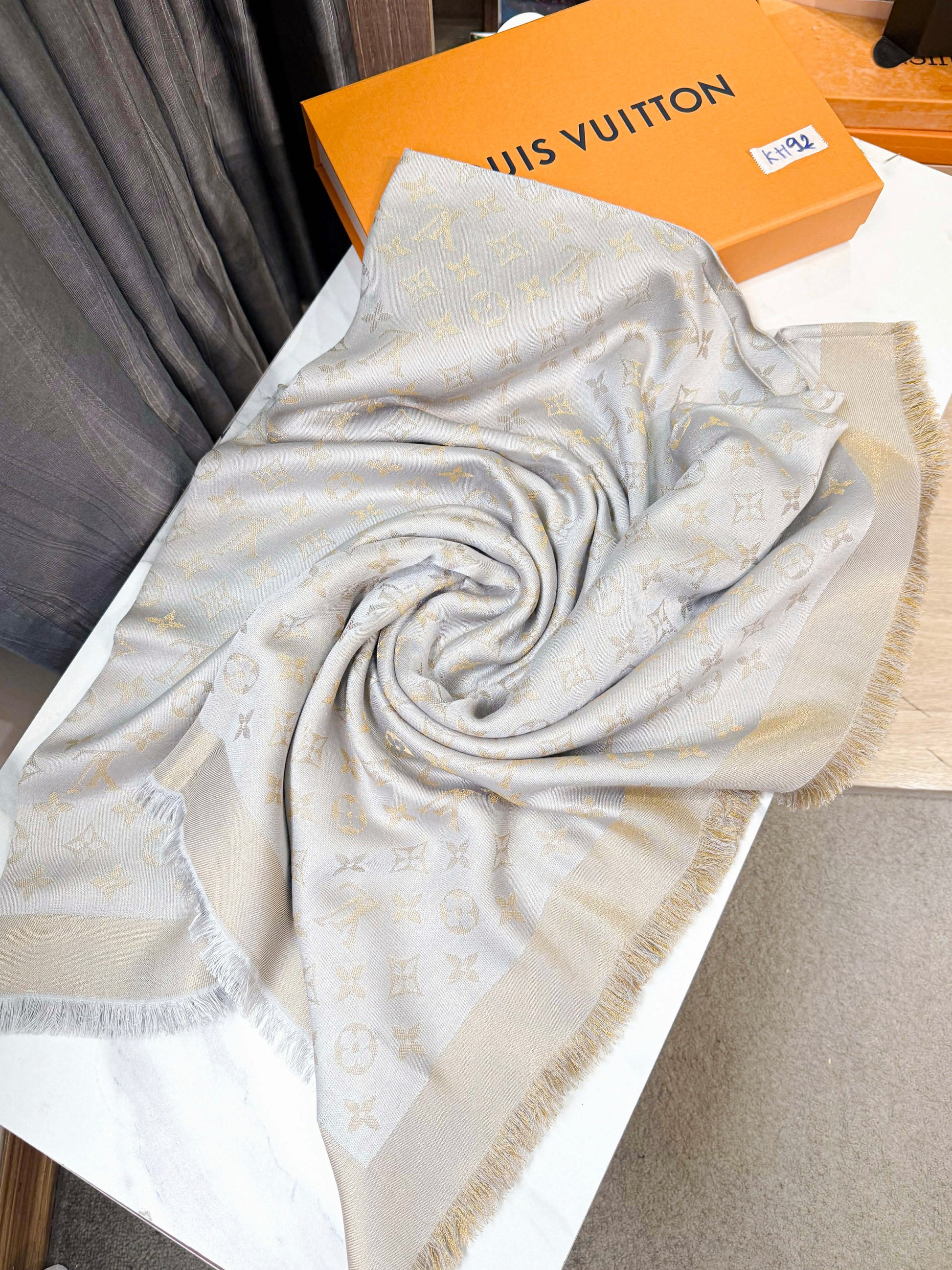 Khăn LV Ánh Kim Ghi Vàng KH92