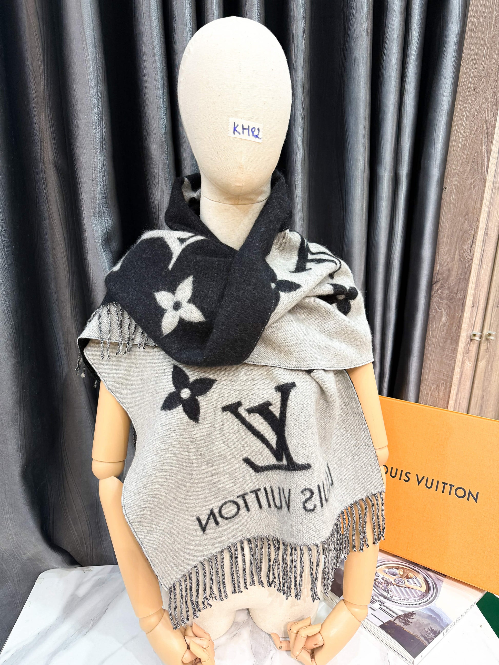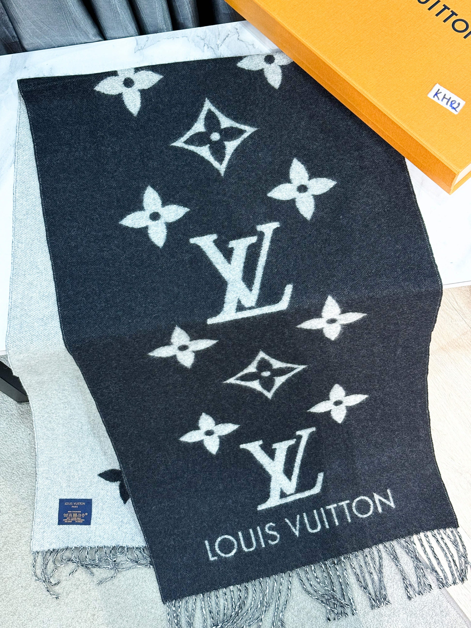 Khăn LV Cashmere Đen Ghi KH82 17/12