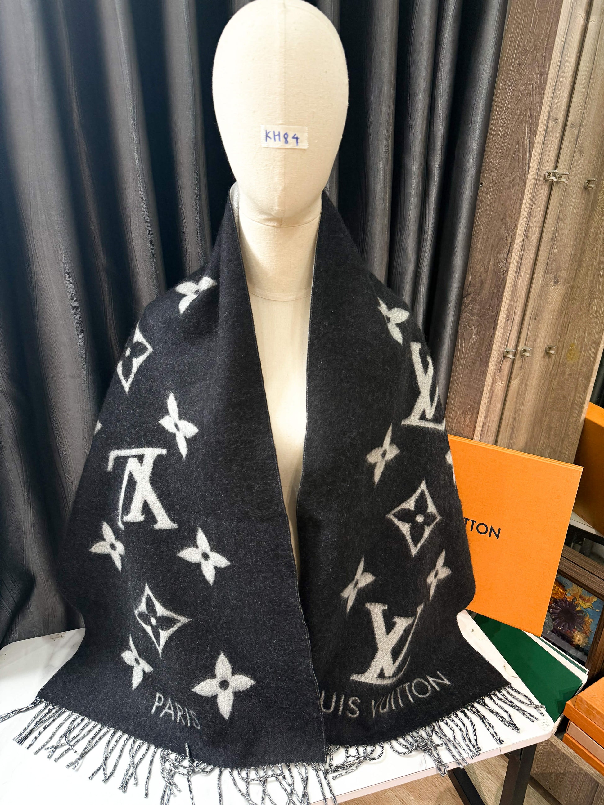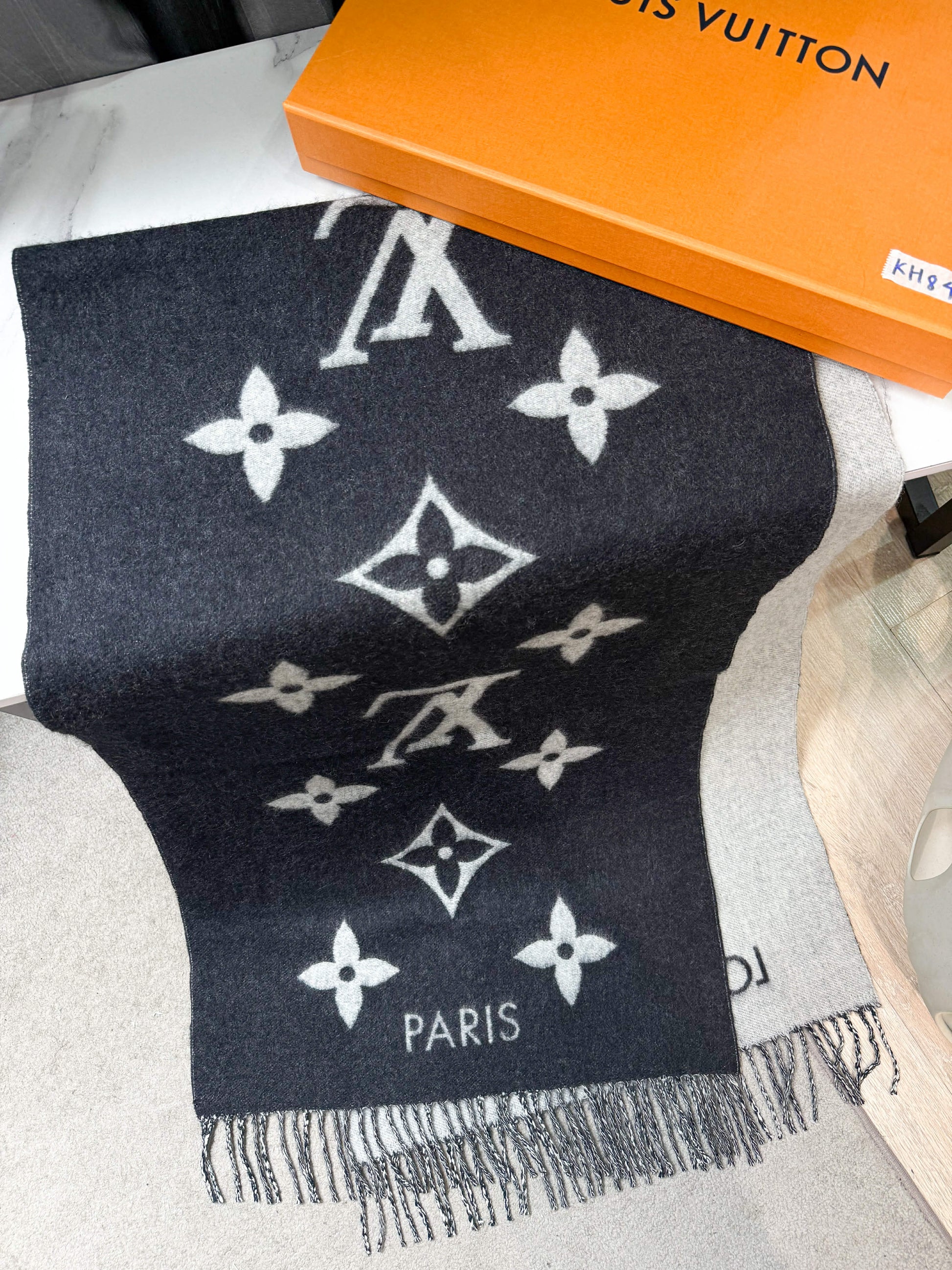 Khăn LV Cashmere Đen Ghi KH84 17/12