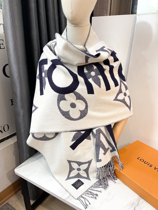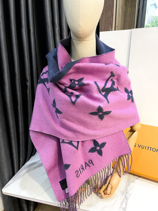 Sold outKhăn LV Cashmere Ghi Hồng Tím