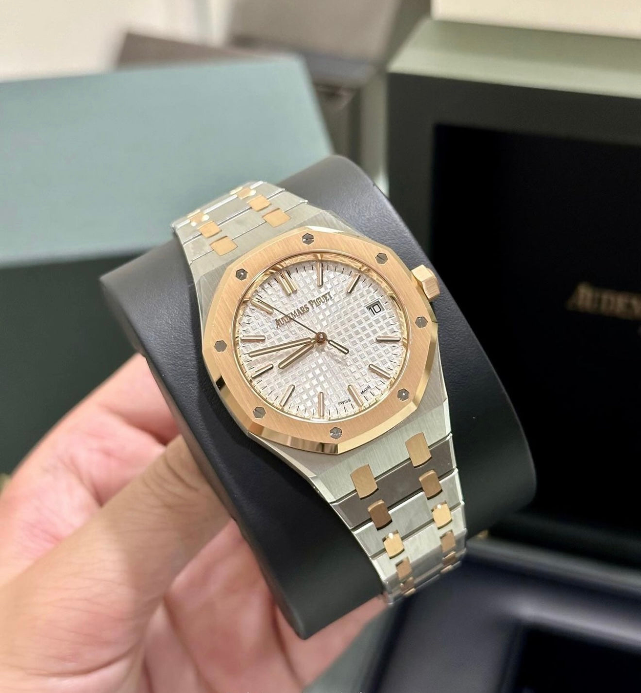 Độ nhận diện duy nhất của AP Royal Oak 37mm với bản mix giữa thép vàng hồng thể hiện cá tính nổi bật dành cho chủ nhân ✨Chị khách đc tăng new fullbox chưa dùng chỉ 💵 9xx triệu