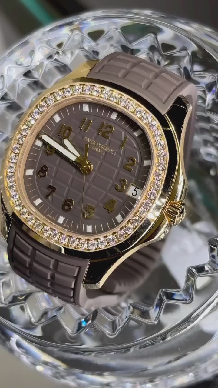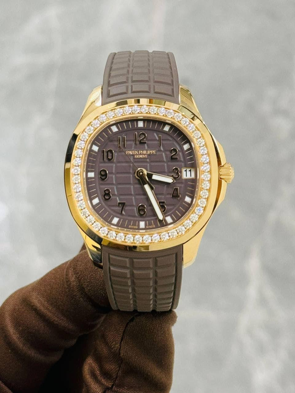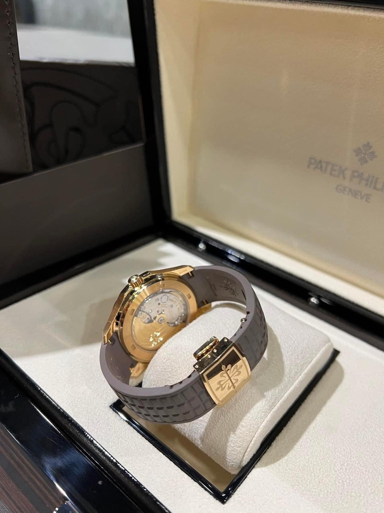 Nằm trong bst Patek Aquanaut, hãng đã mang đến cho người dùng một thiết kế sang trọng thể thao đương đại. Với gam màu nâu trầm ấm hơn, bên trong lớp vỏ vàng hồng sang trọng tuyệt đẹp.
