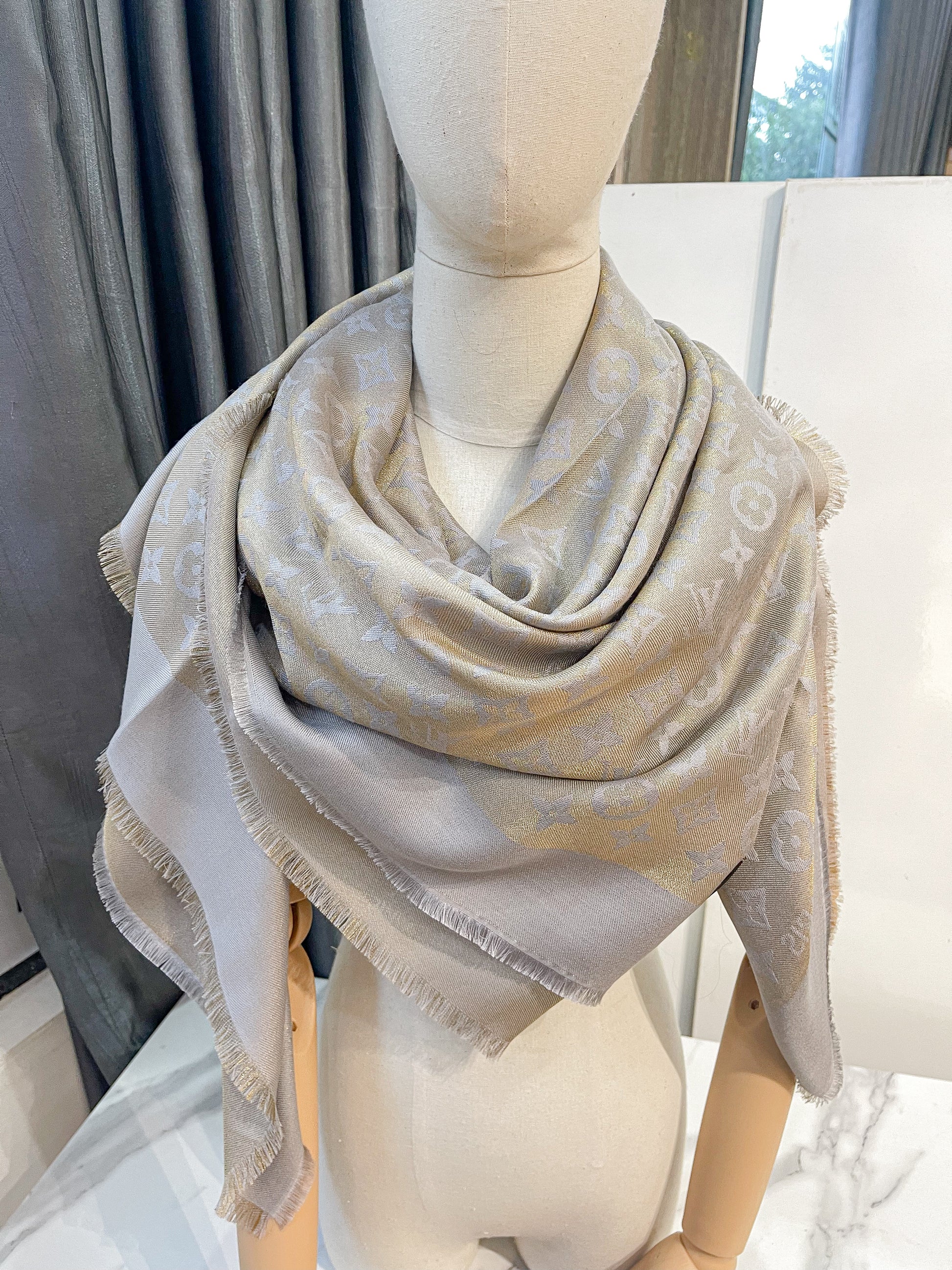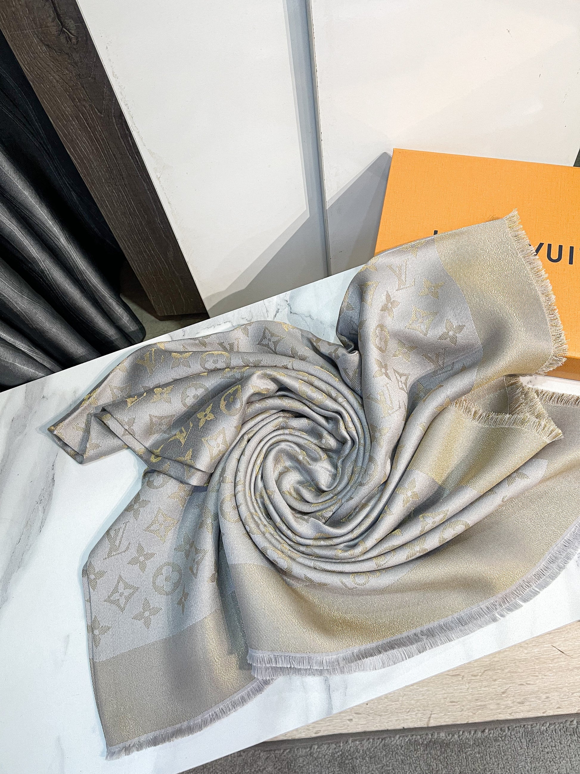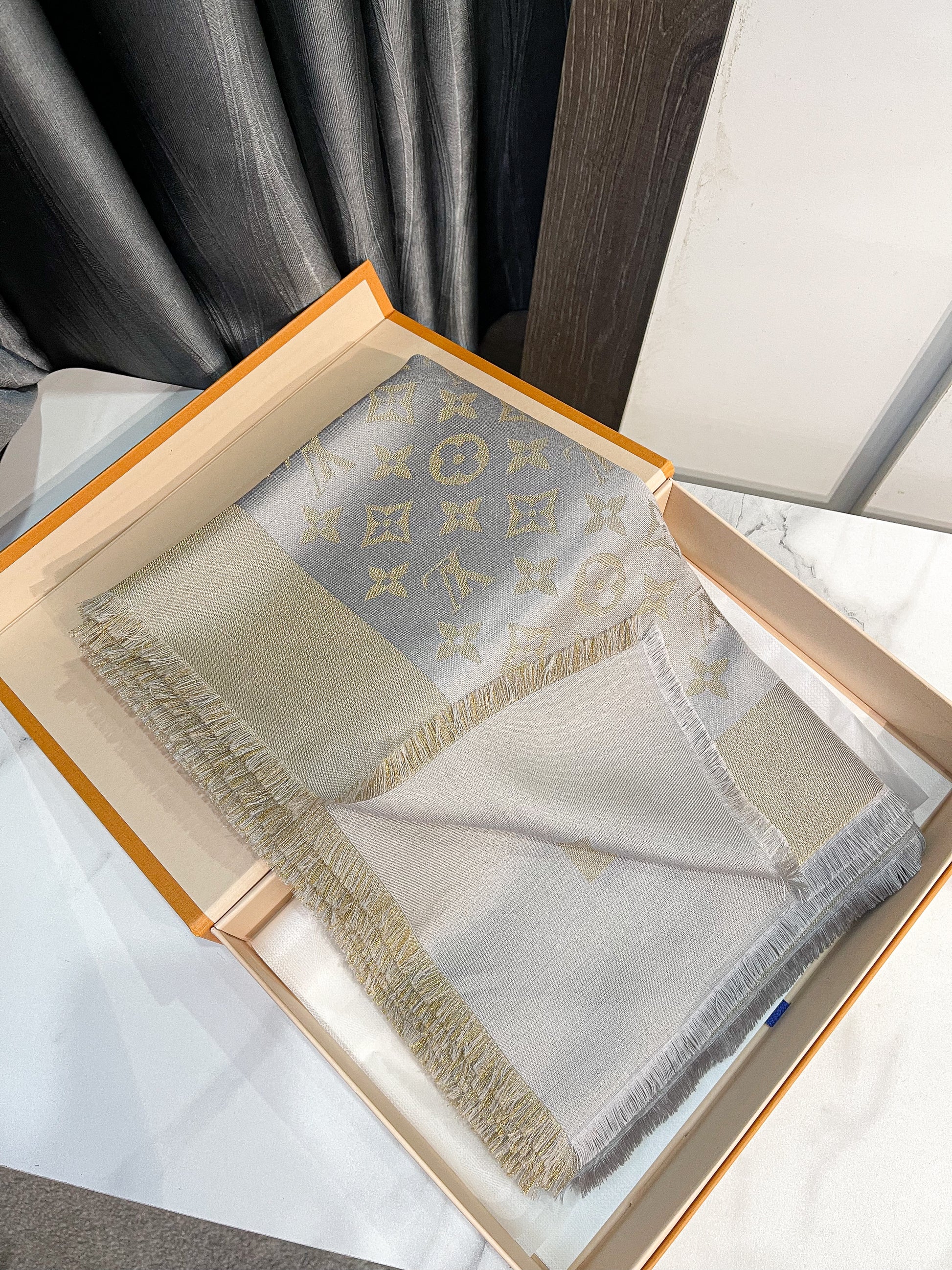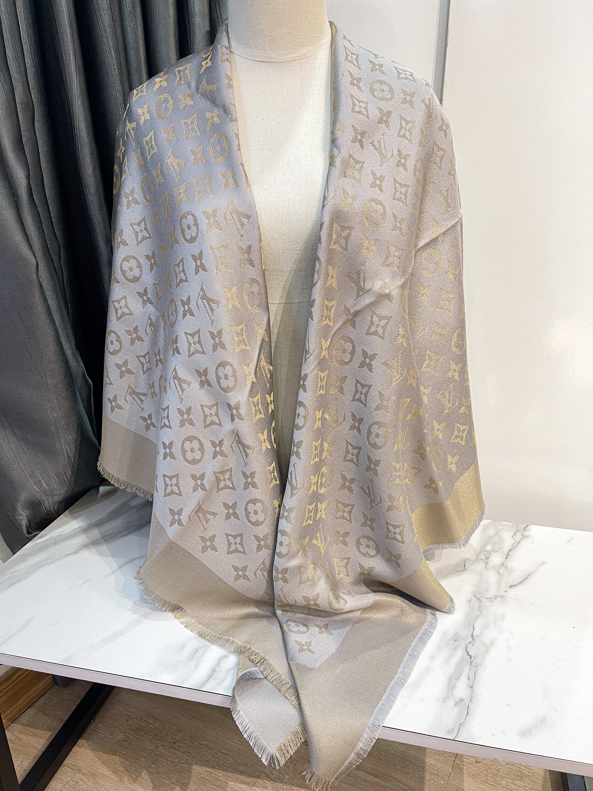 Khăn LV Ánh Kim Ghi Vàng