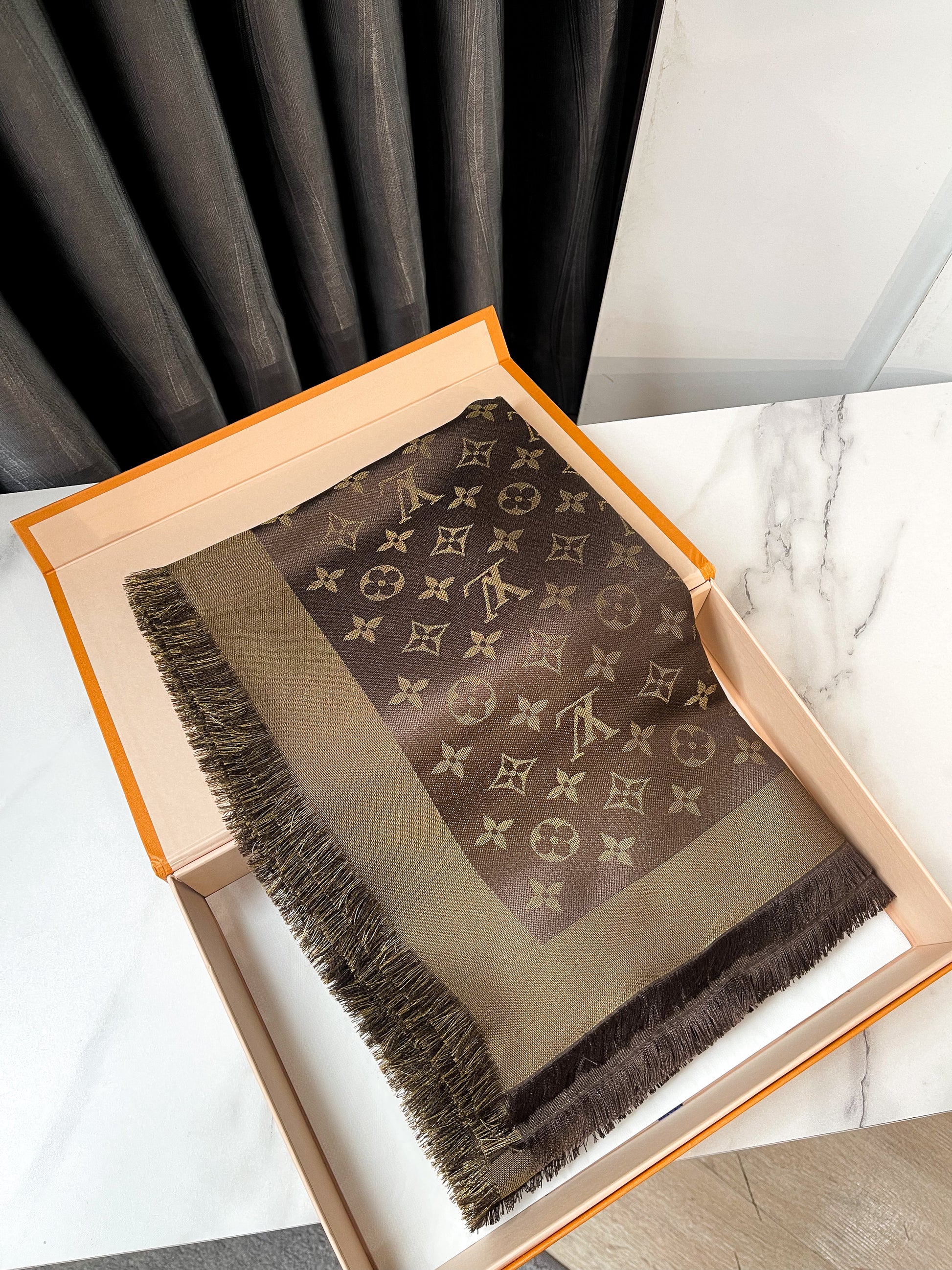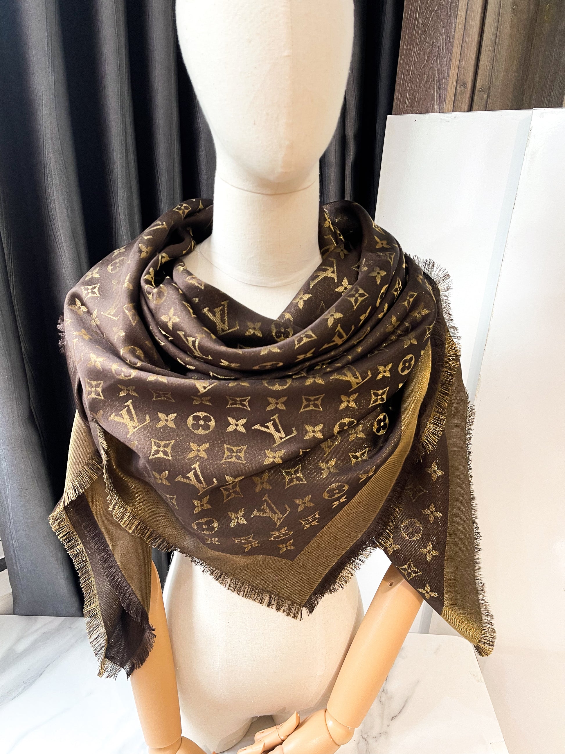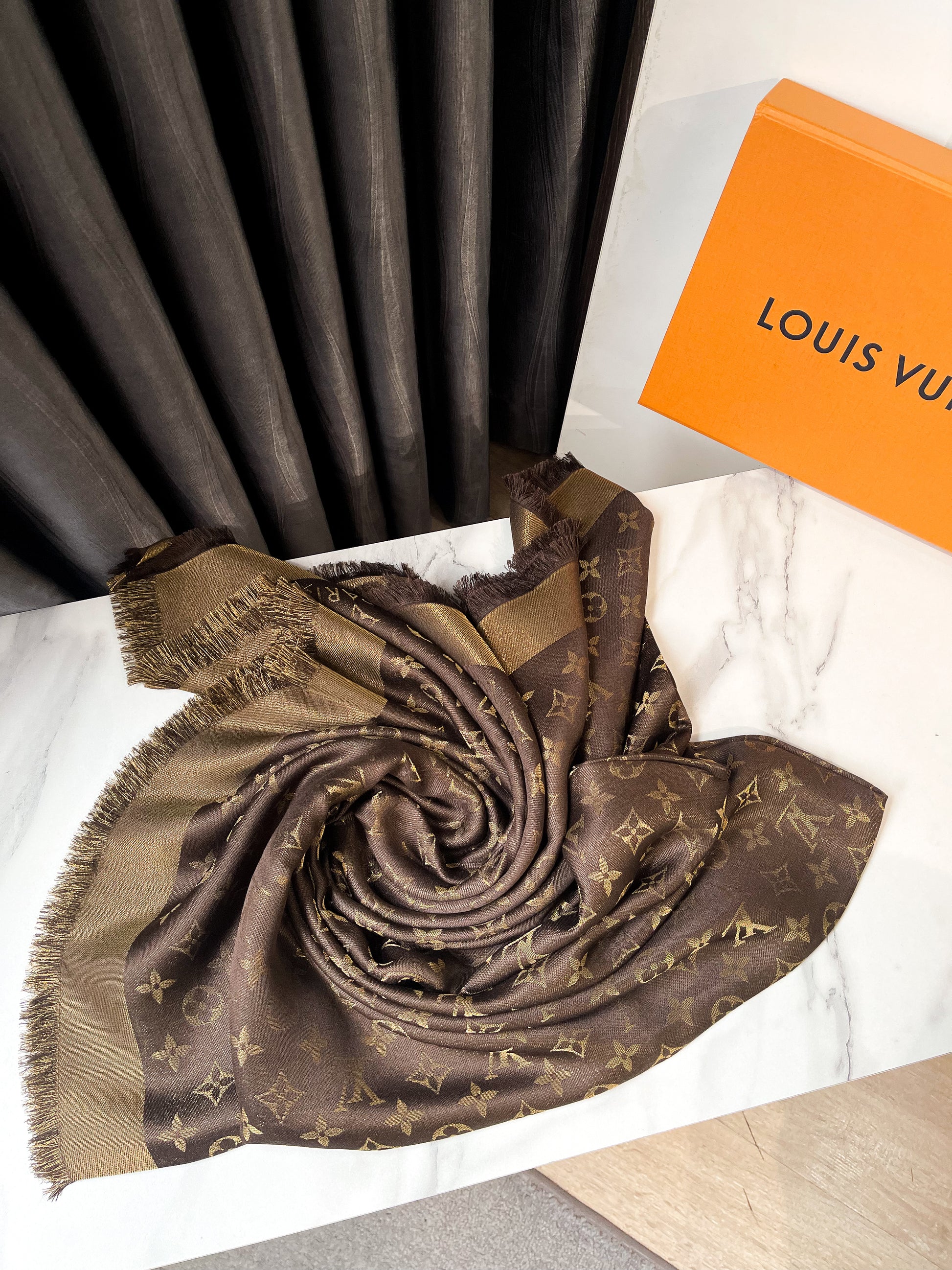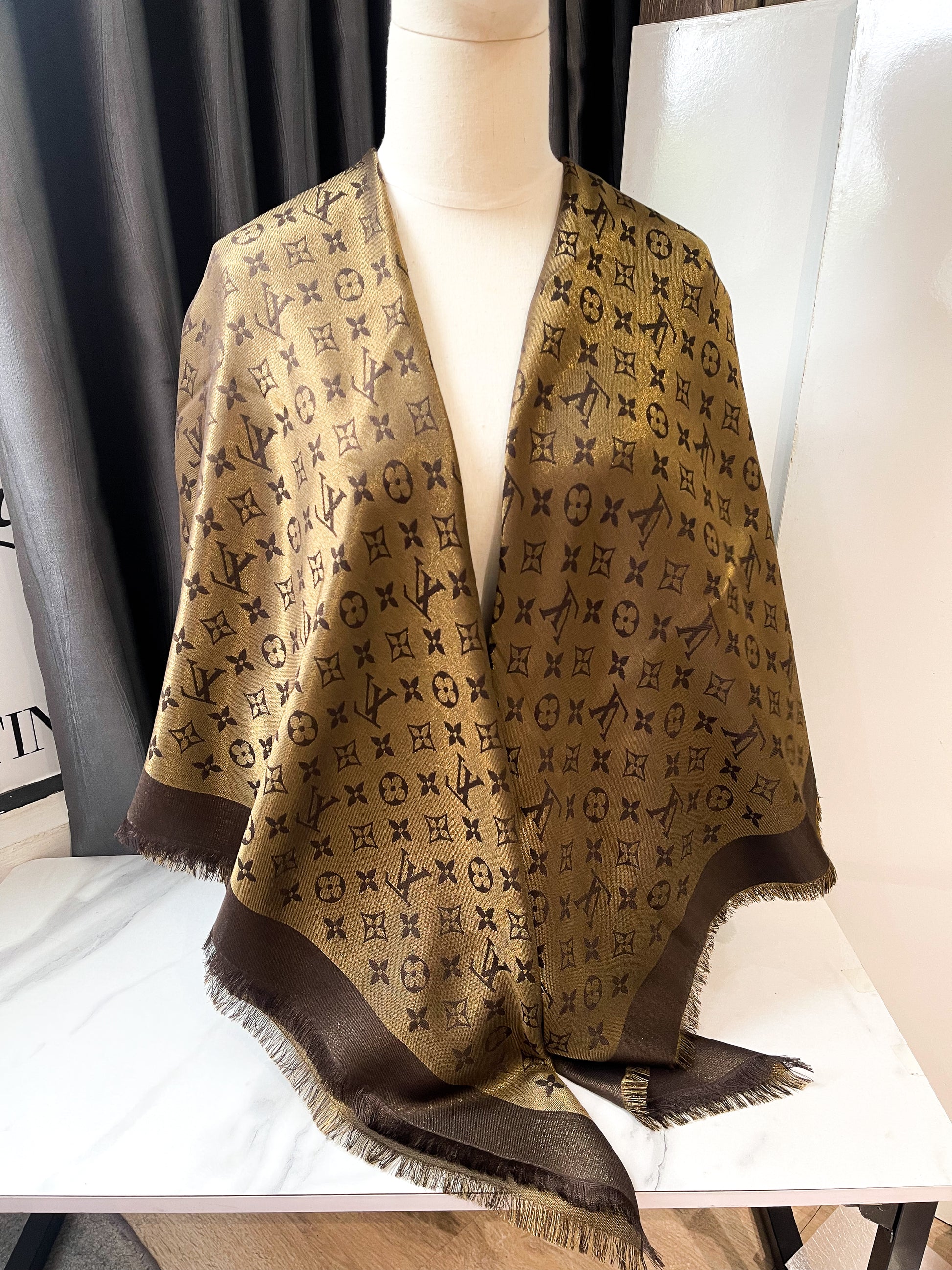 Khăn LV Ánh Kim Nâu
