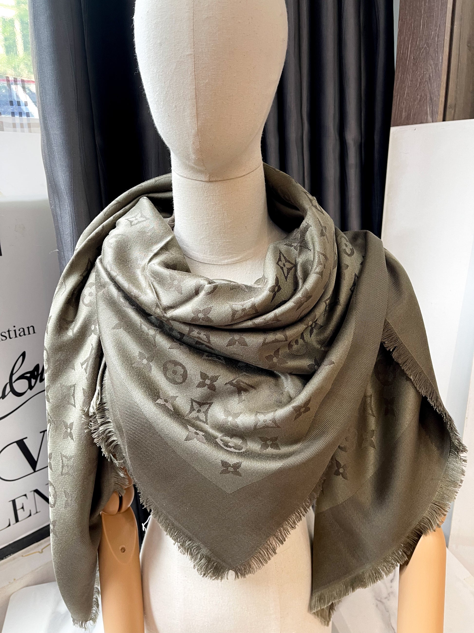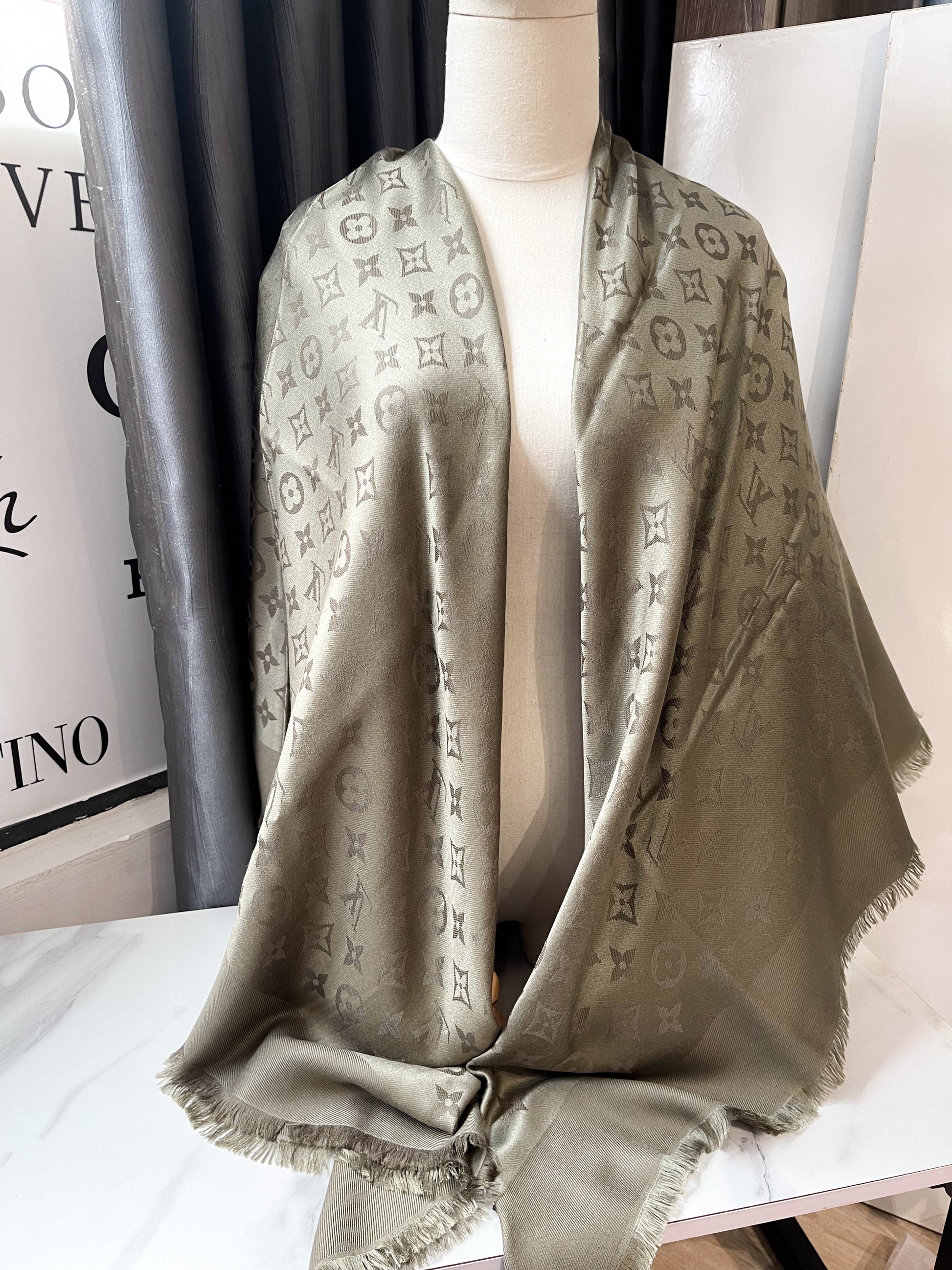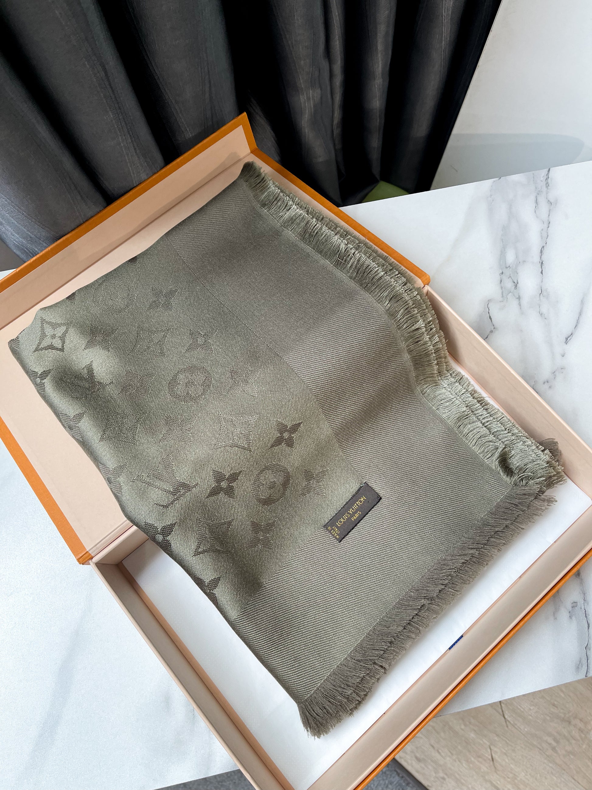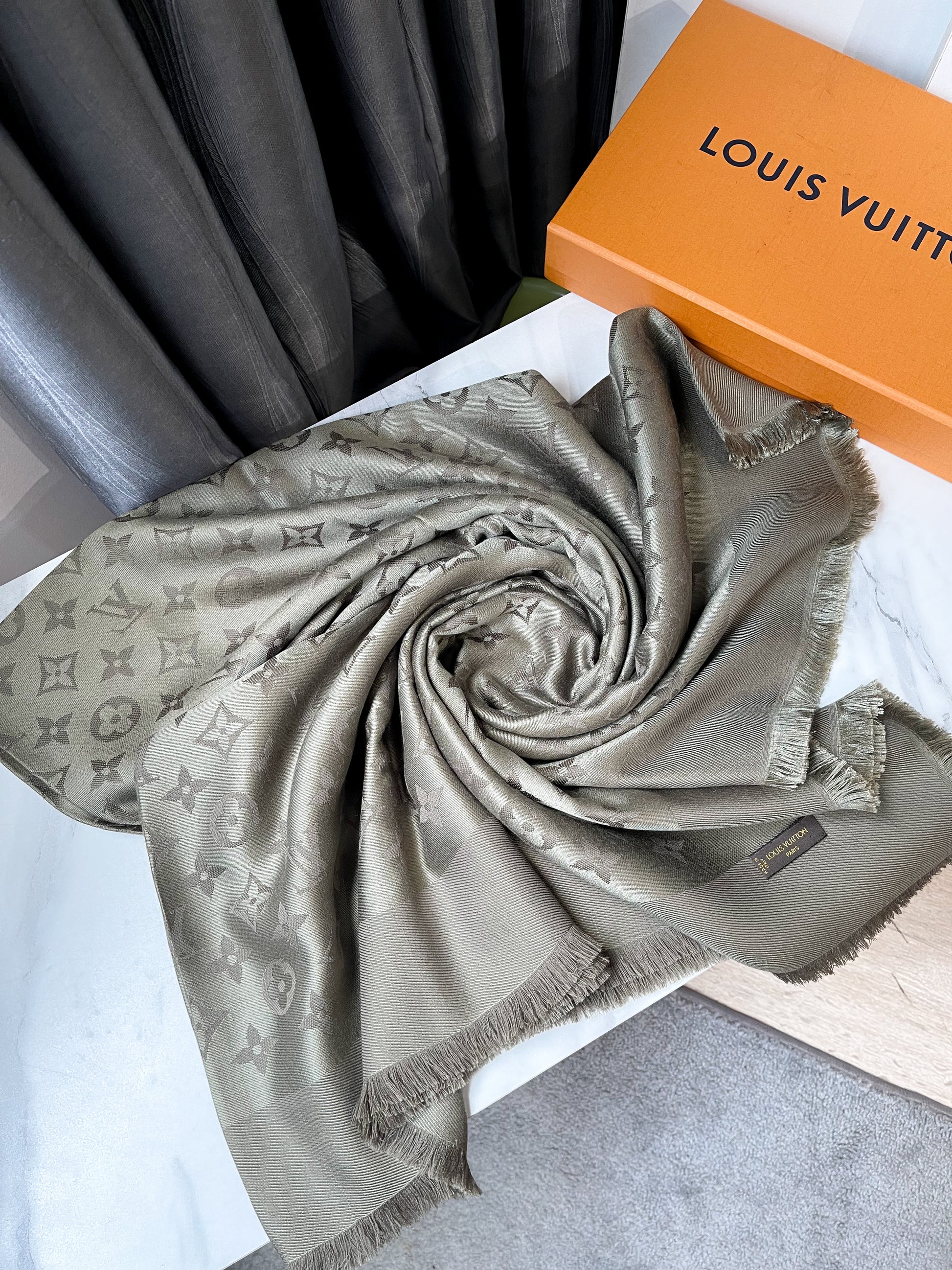 Khăn LV Khổ 140x140 Ghi Rêu