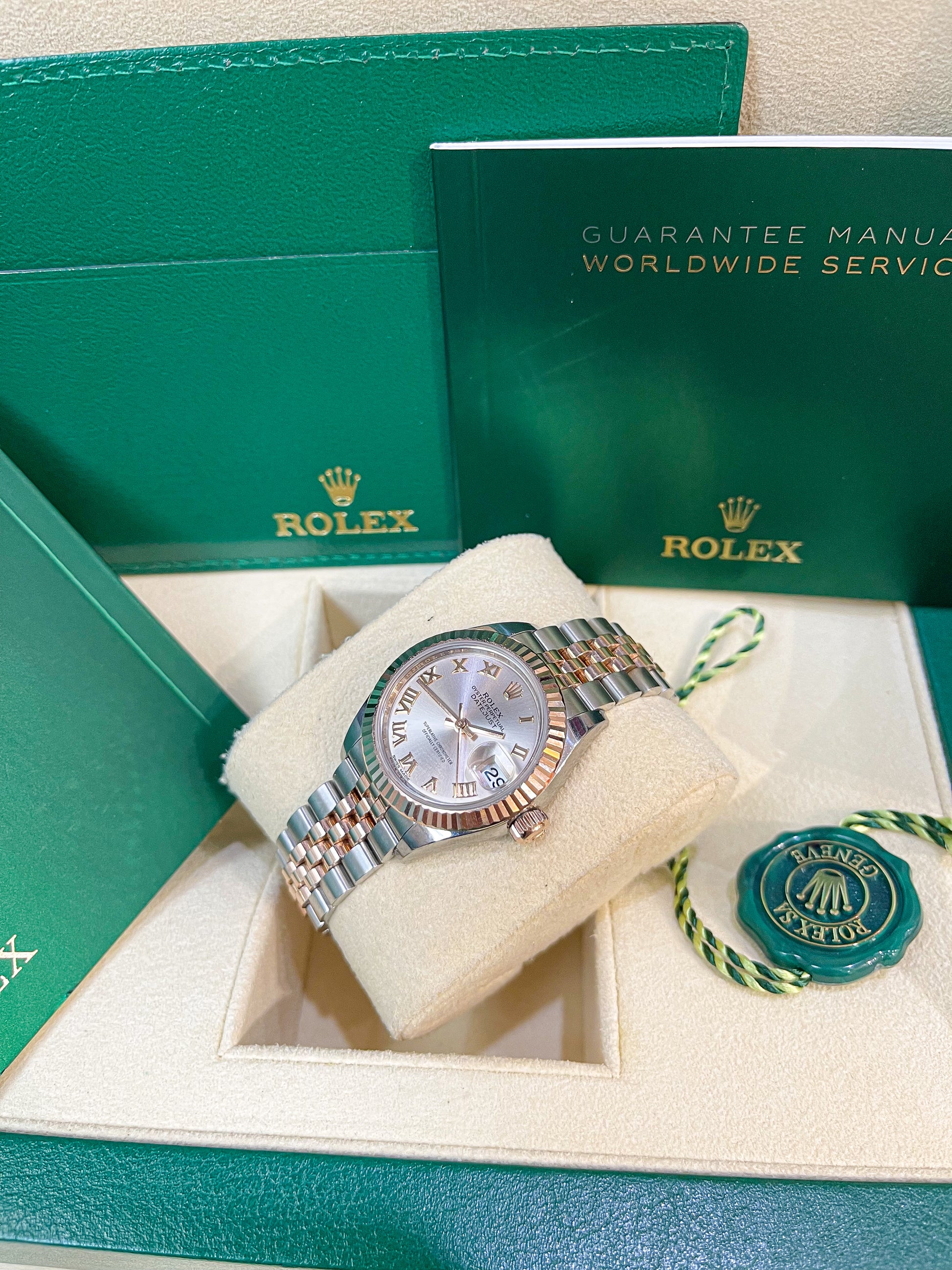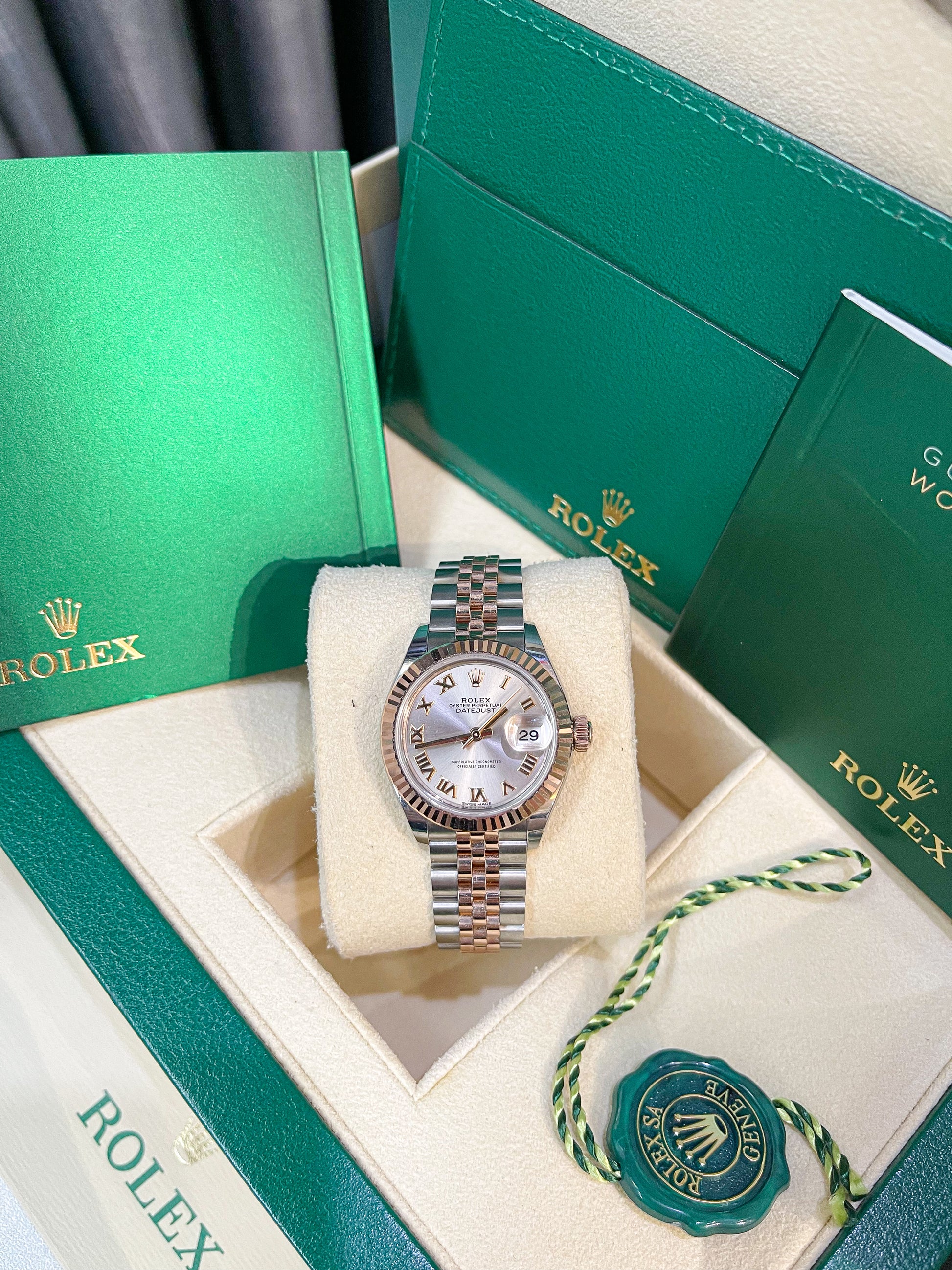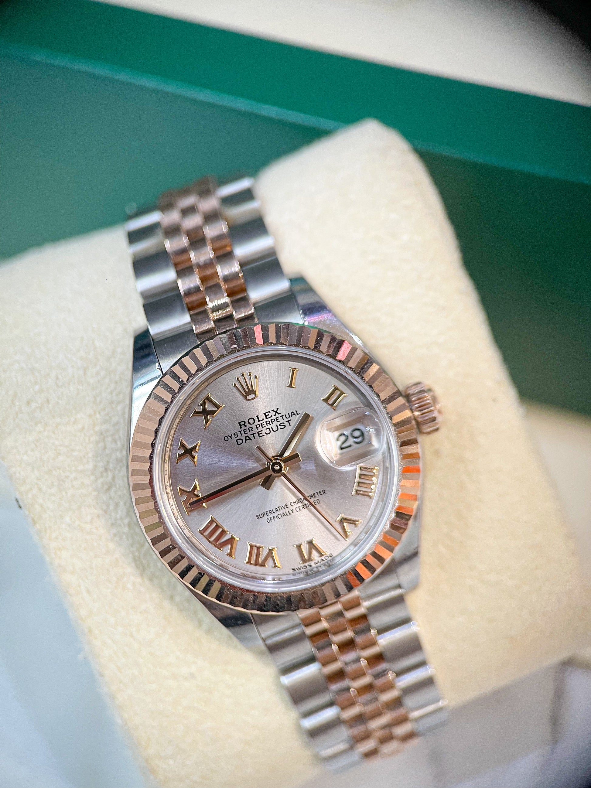 Rolex 28 Cọc La Mã Demi Vàng Hồng