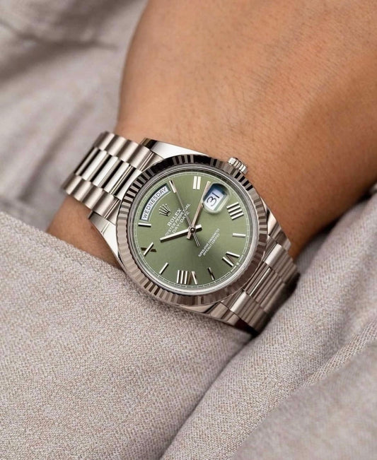 Đồng Hồ Rolex Day-Date 228239 White Gold Olive Green Dial