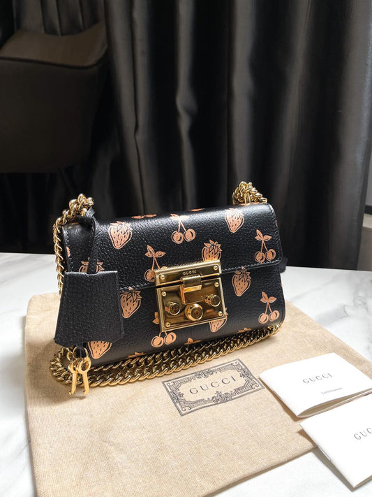 AgotadoPadlock Gucci Đen Hoạ Tiết Dâu