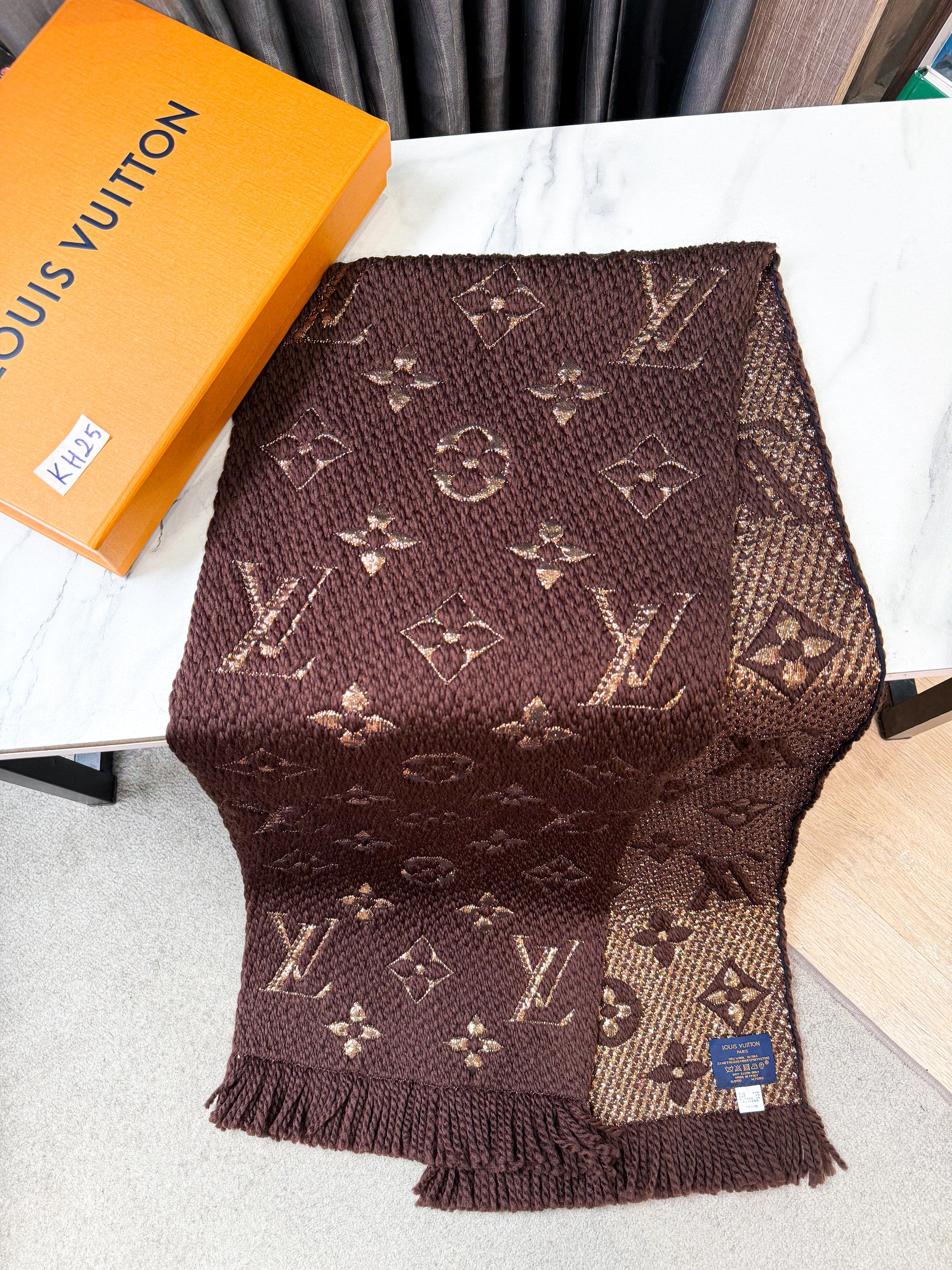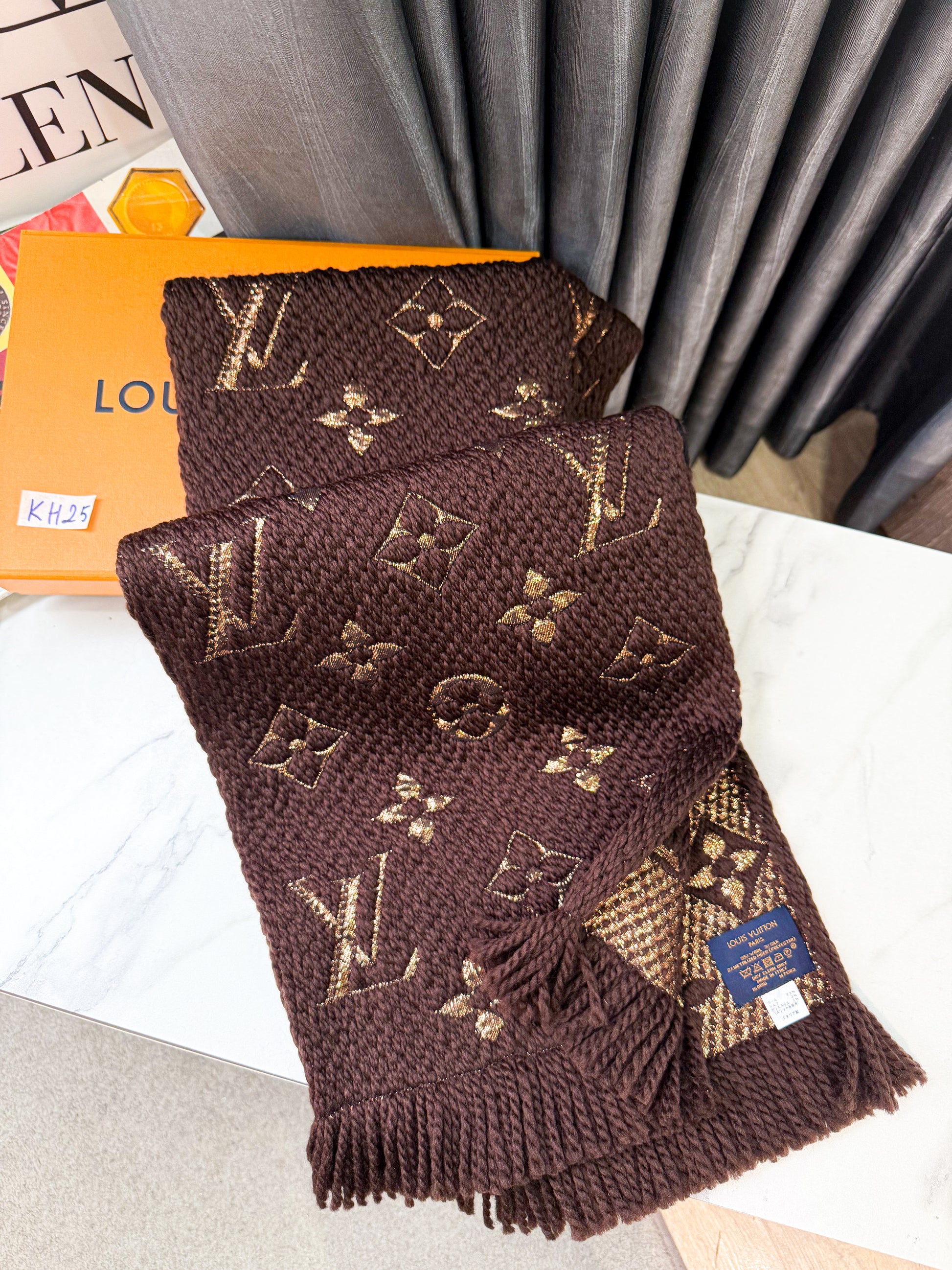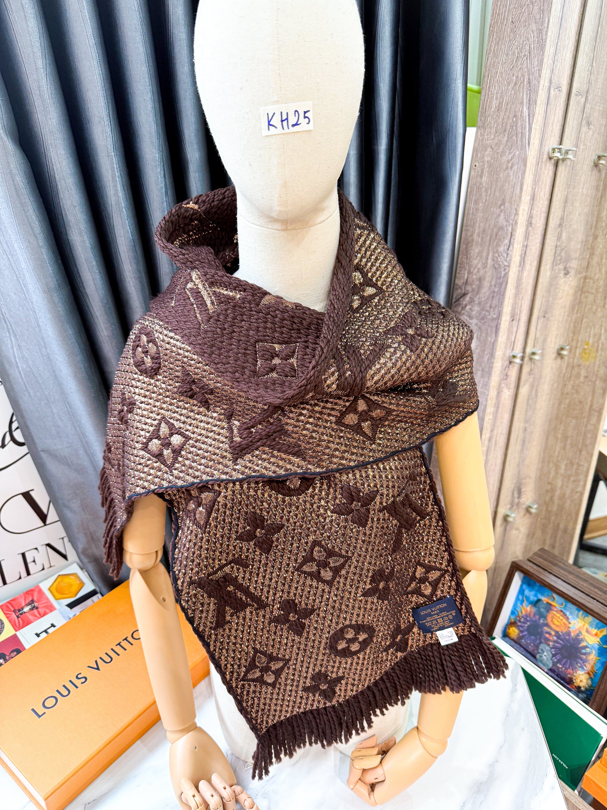 Khăn len Lệ Vi nâu ánh kim hàng trưng bày kèm box