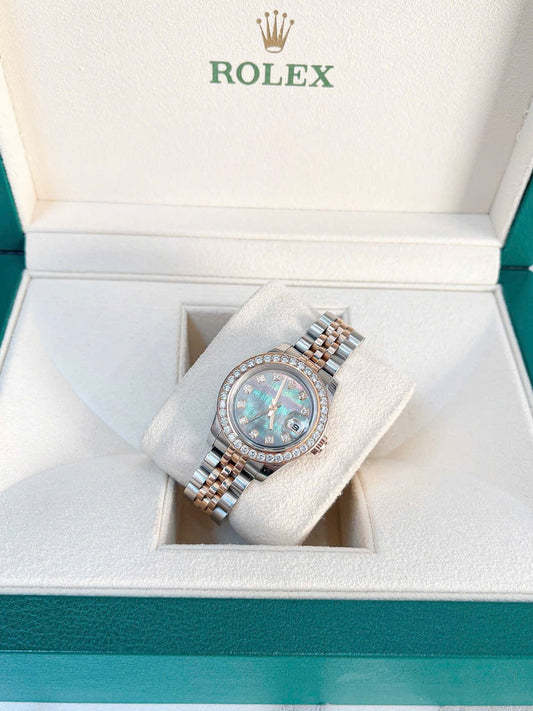 Đồng Hồ Rolex Datejust 26mm mặt khảm trai tím custom option kim cương
