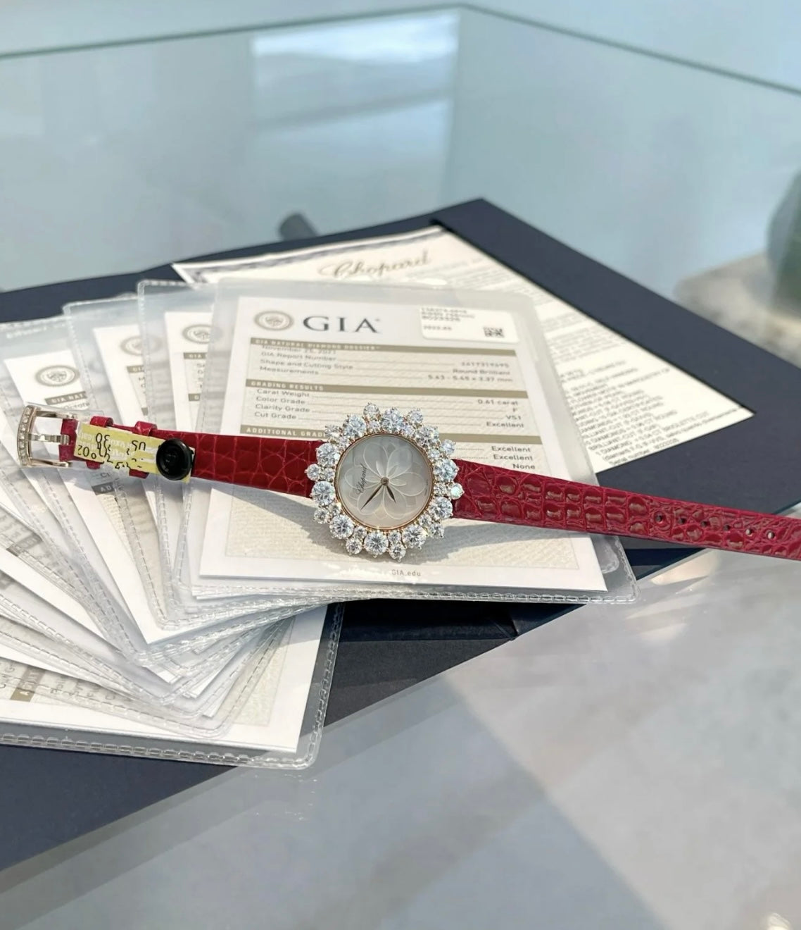 𝐂.𝐡.𝐨.𝐩.𝐚.𝐫.𝐝 𝐋´𝐇𝐞𝐮𝐫𝐞 𝐝𝐮 𝐃𝐢𝐚𝐦𝐚𝐧𝐭 với bộ vỏ vàng trắng , kim cương 💎 zin hãng to như hạt đỗ luôn ạ kèm kiểm định GIA👌 Lướt đẹp fullset 💵 1,x tỷ ( new store 2,6 tỷ)