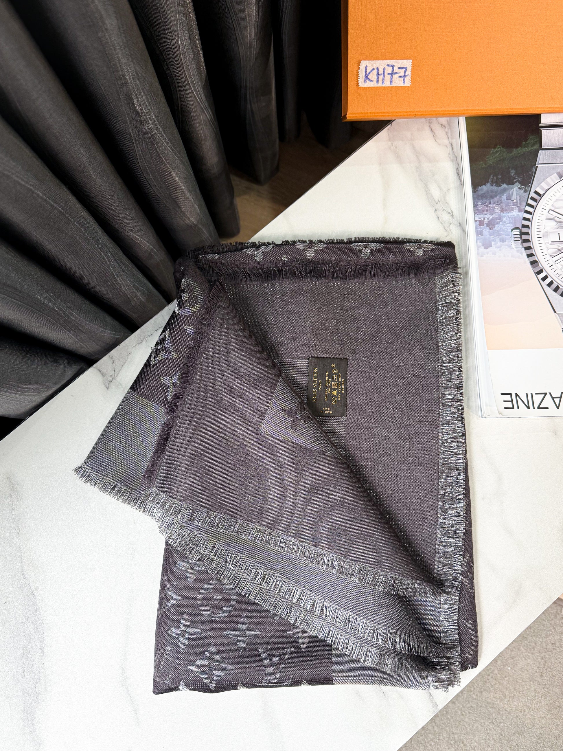 Khăn LV Ánh Kim Grey KH77 16/12