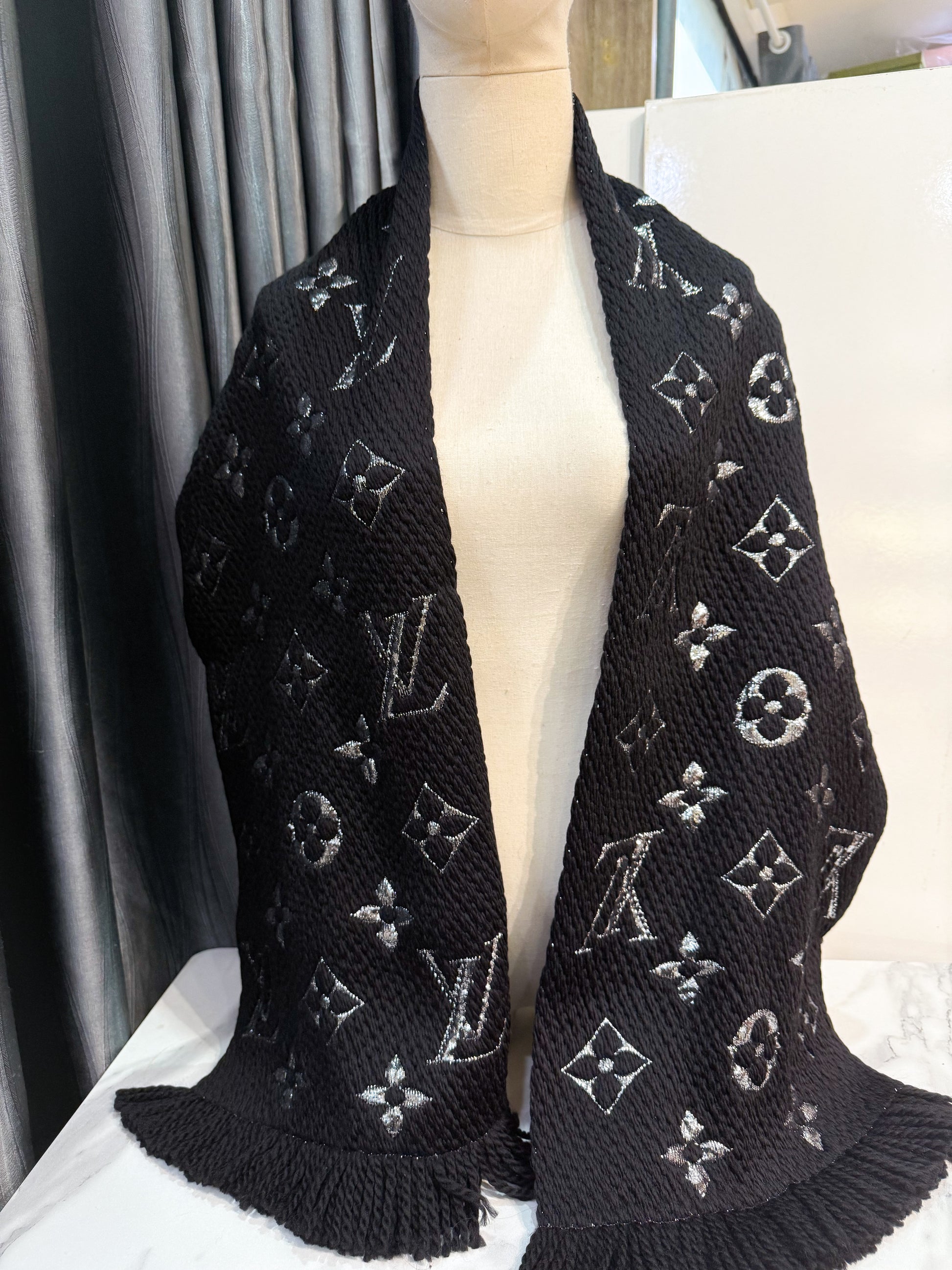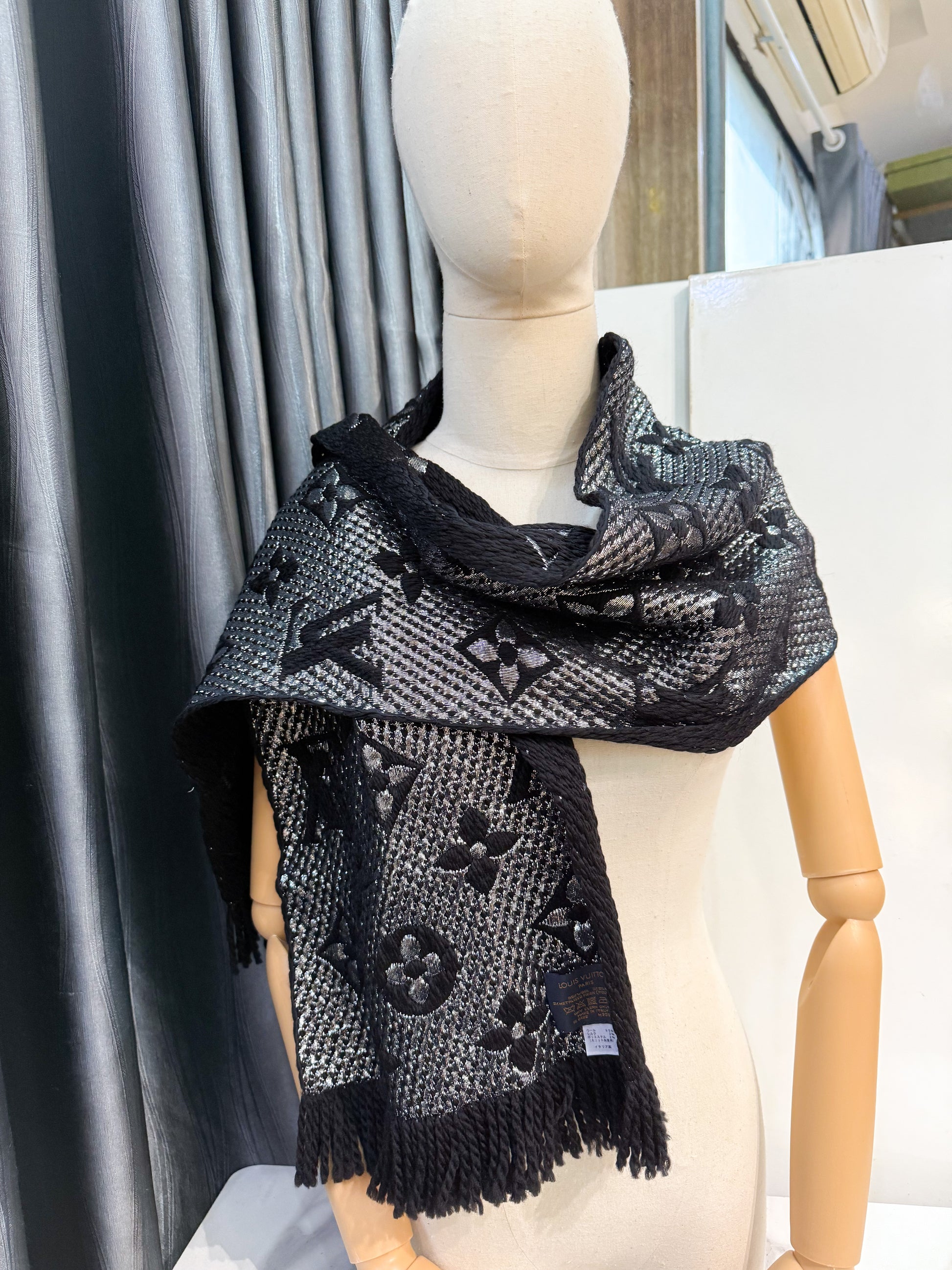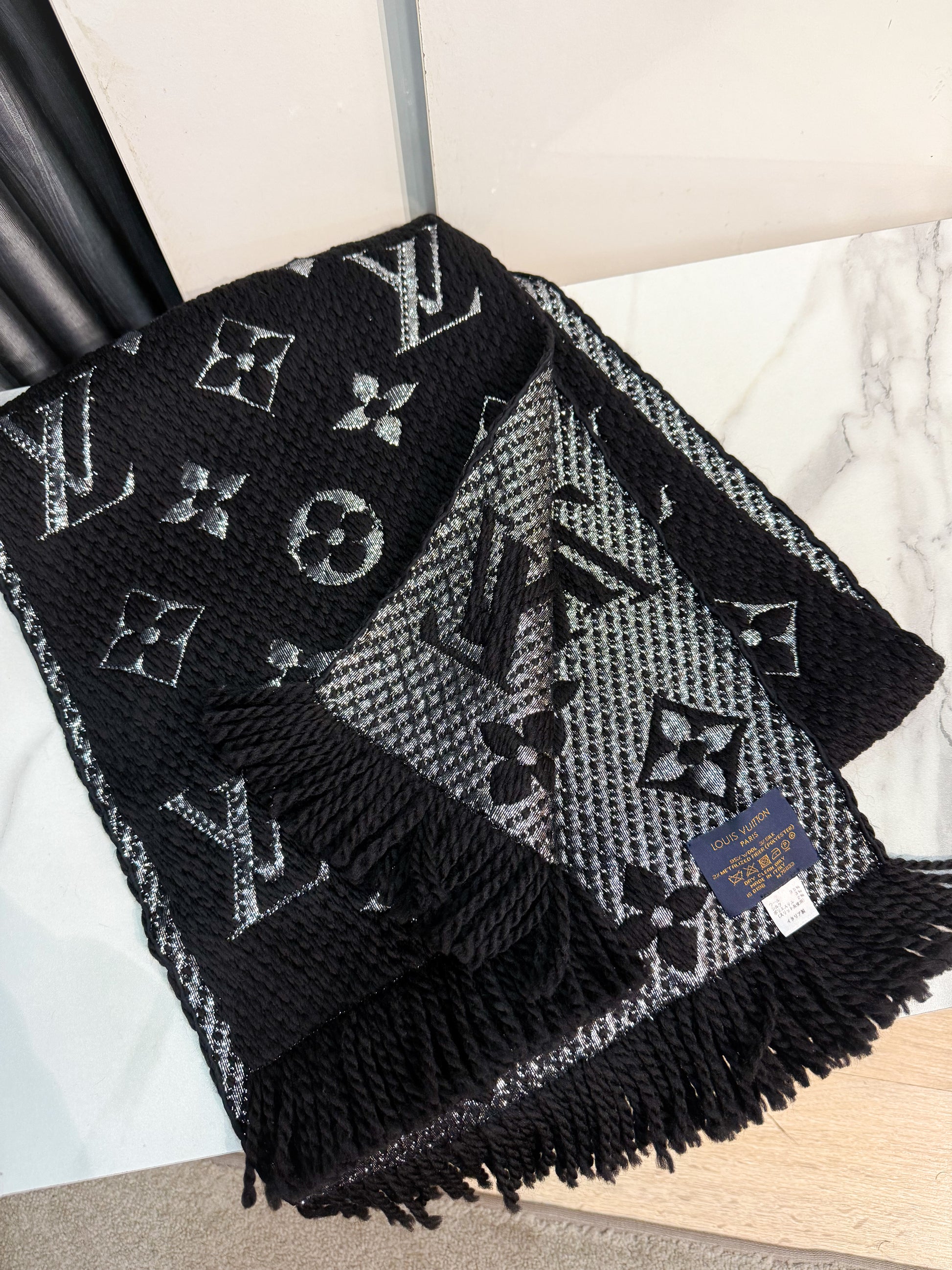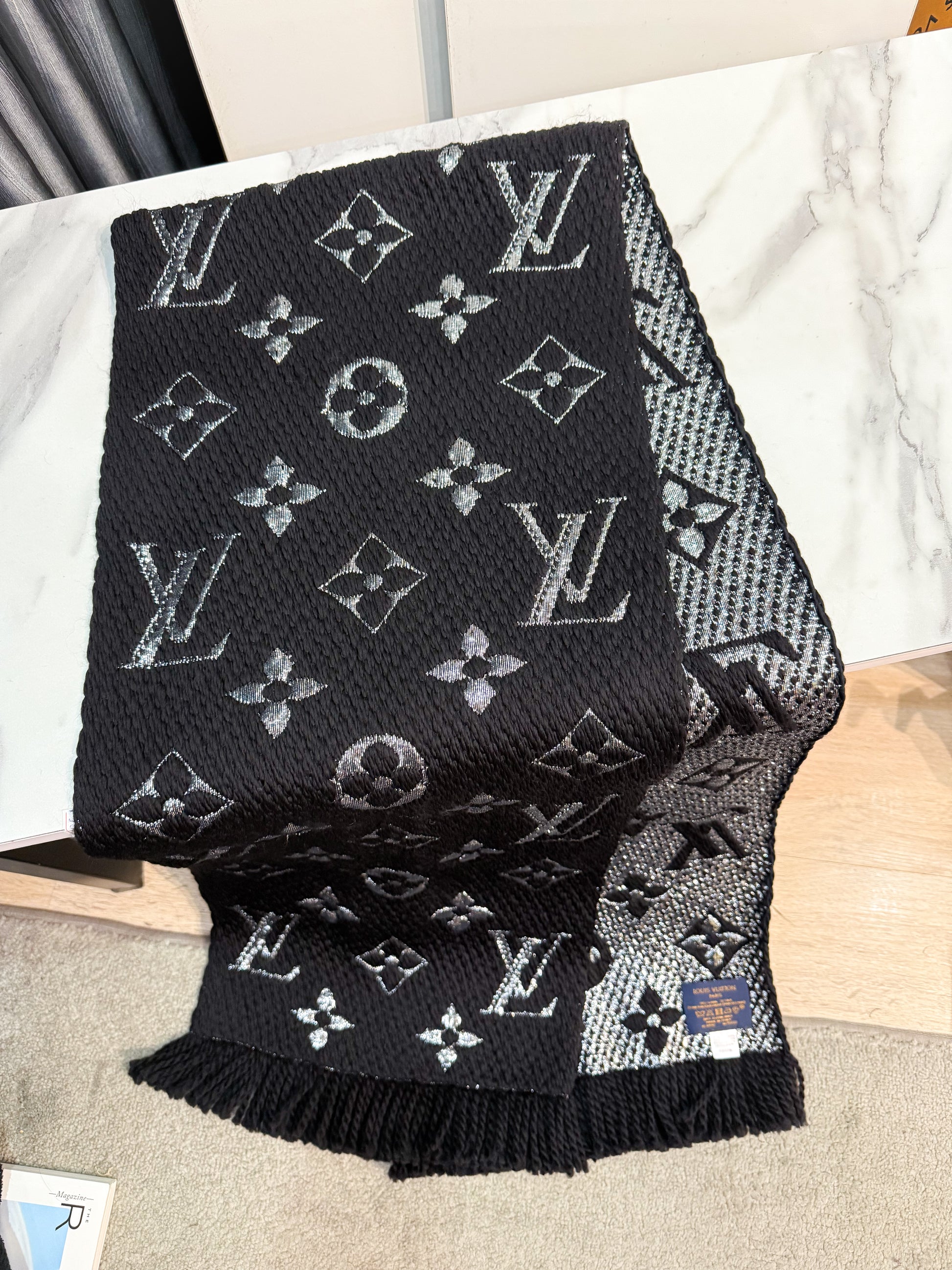 Khăn LV Len Đen Ánh Kim