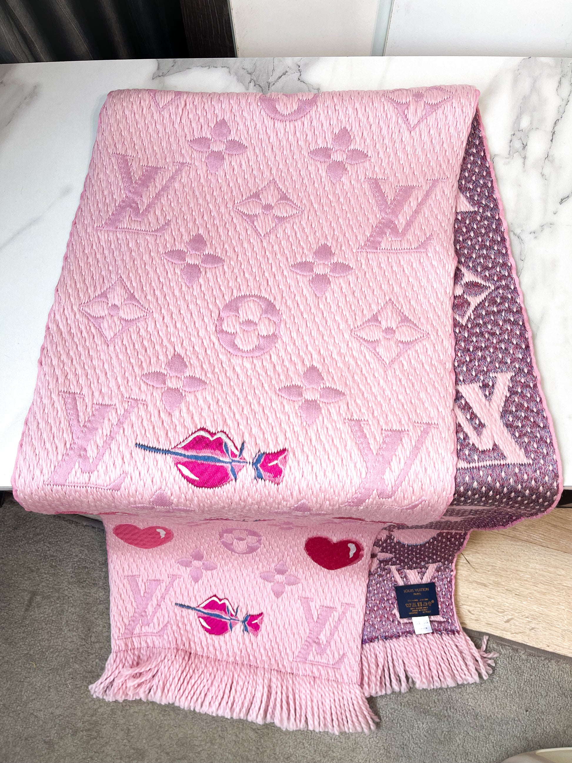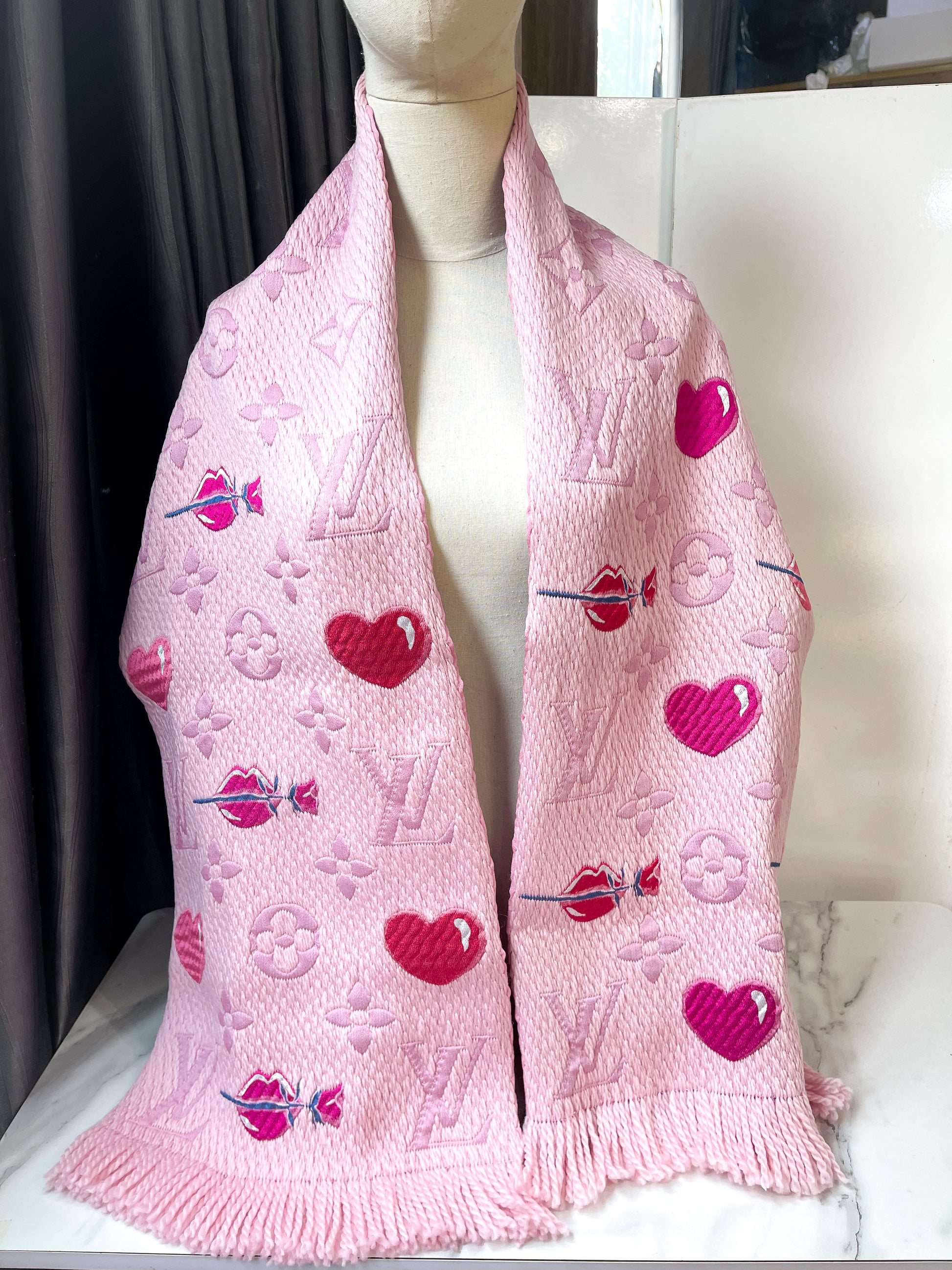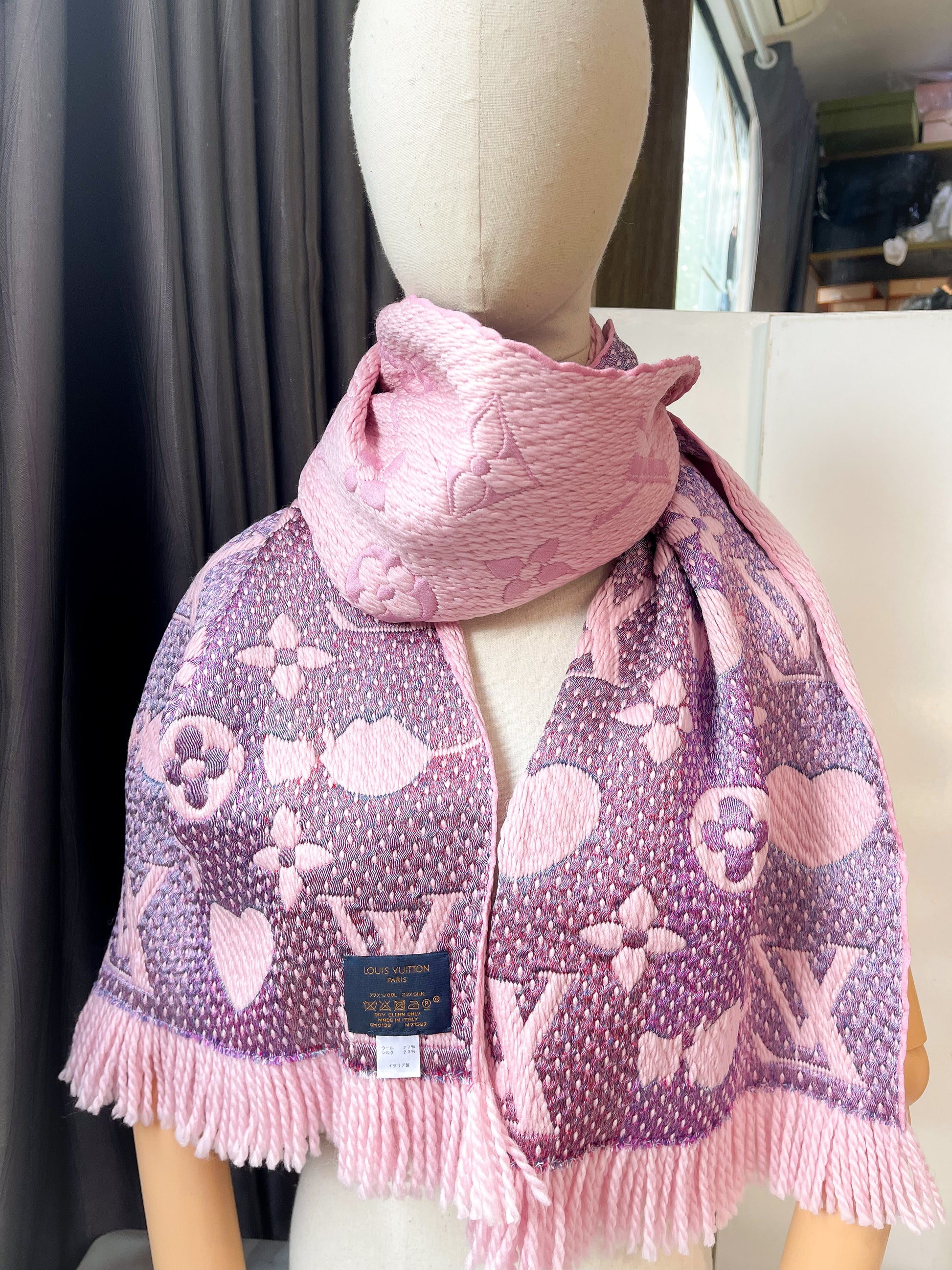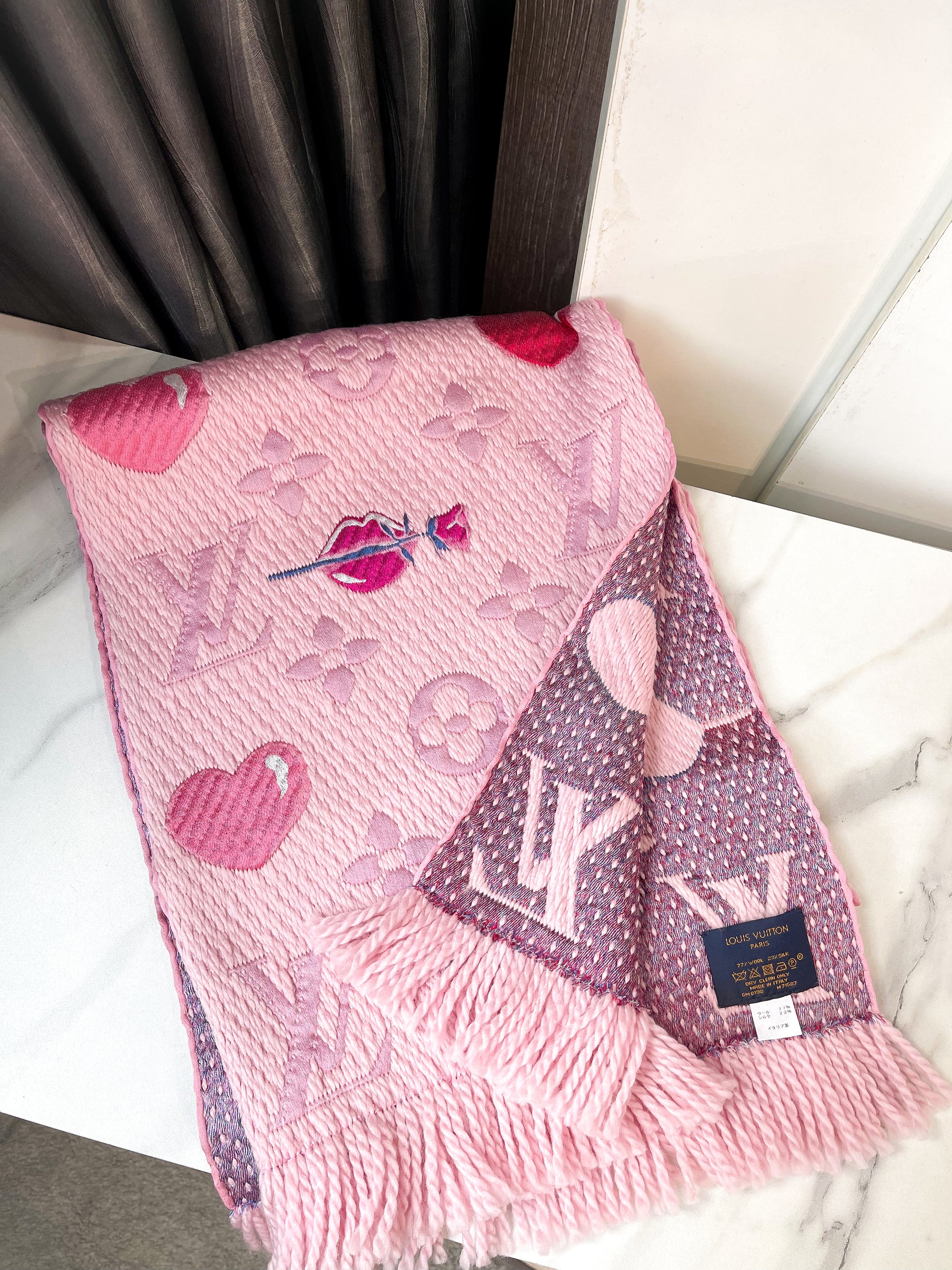 Khăn len lệ vi tone pink + hoạ tiết trái tim xinh quá