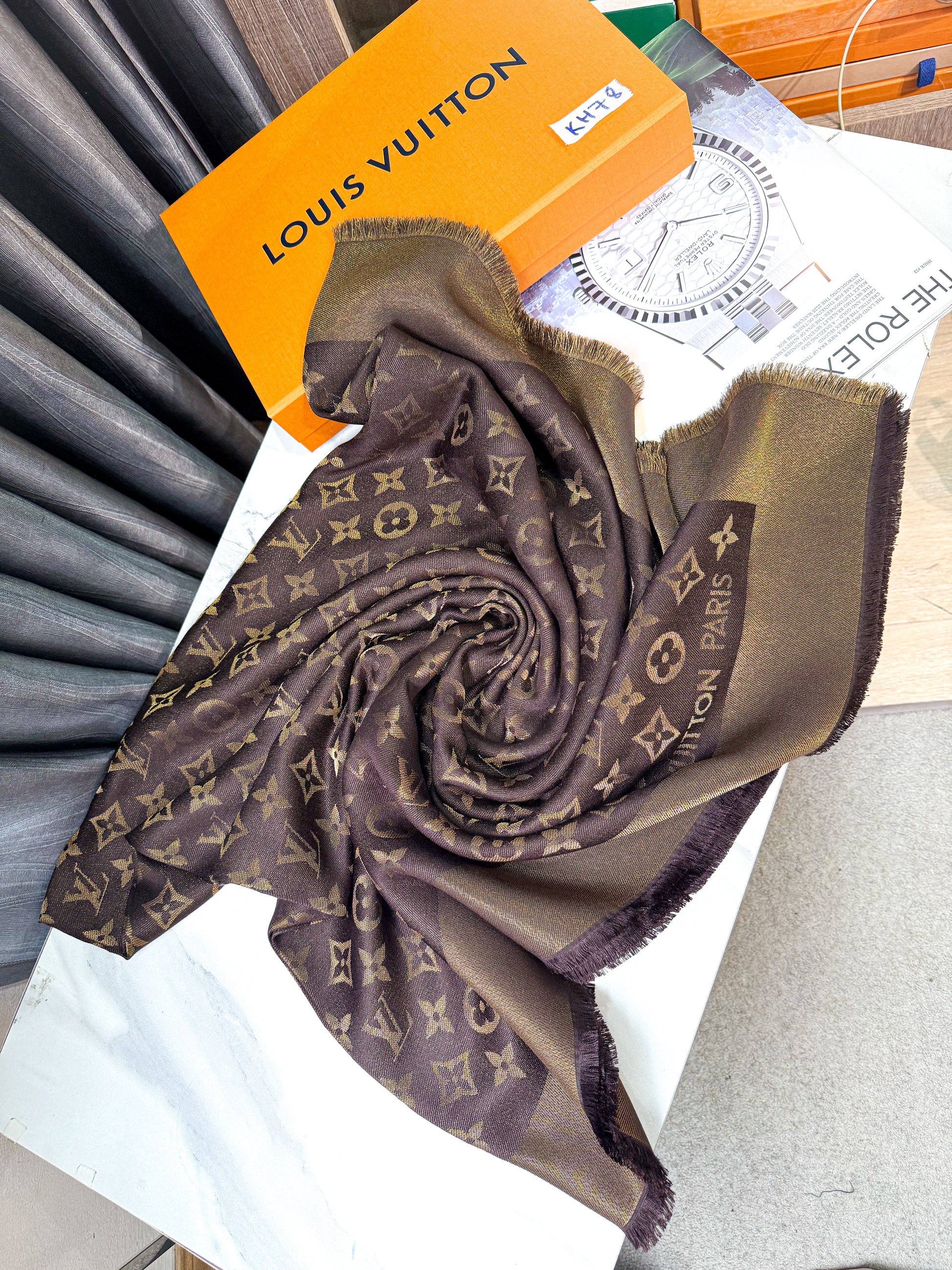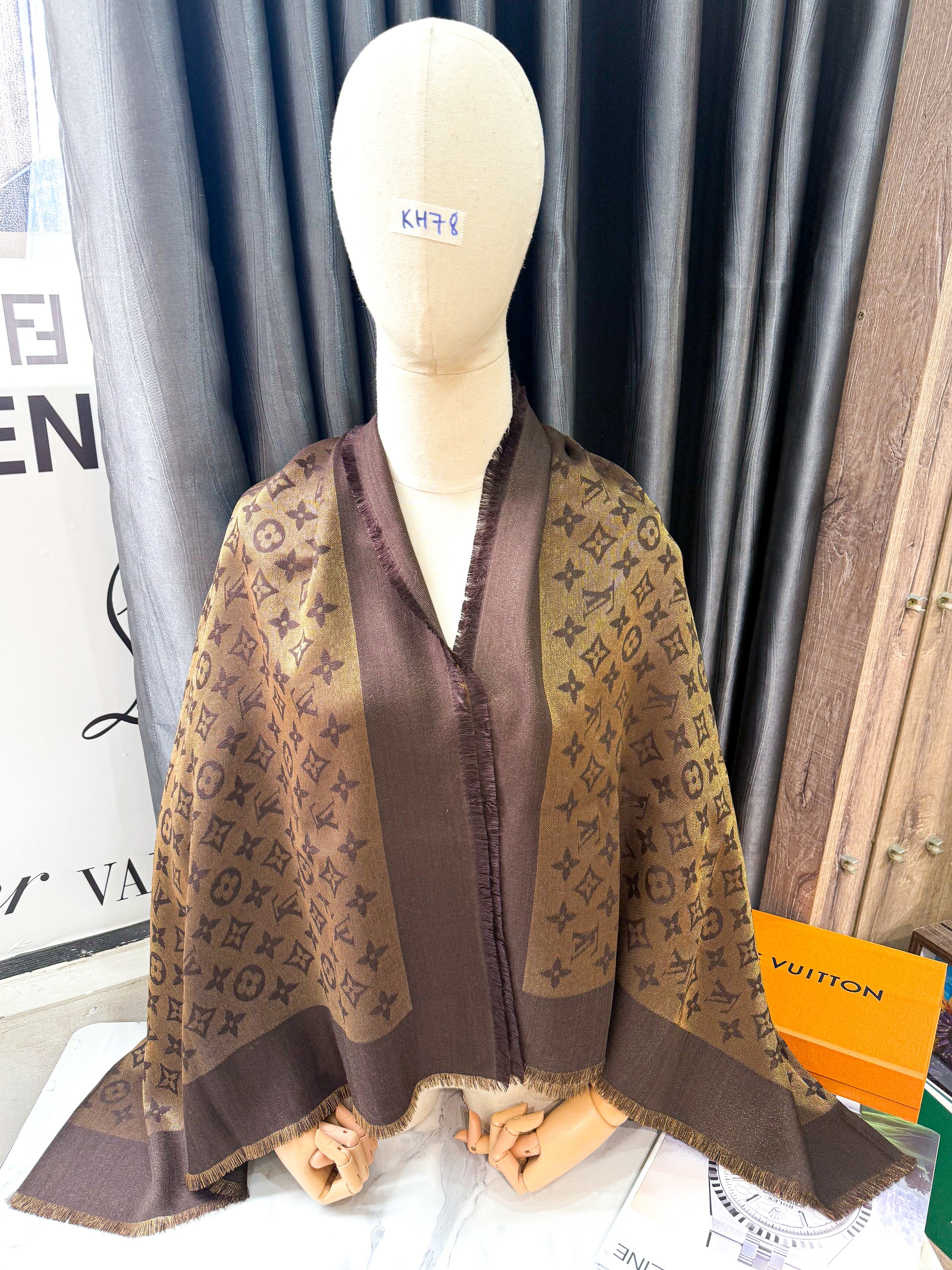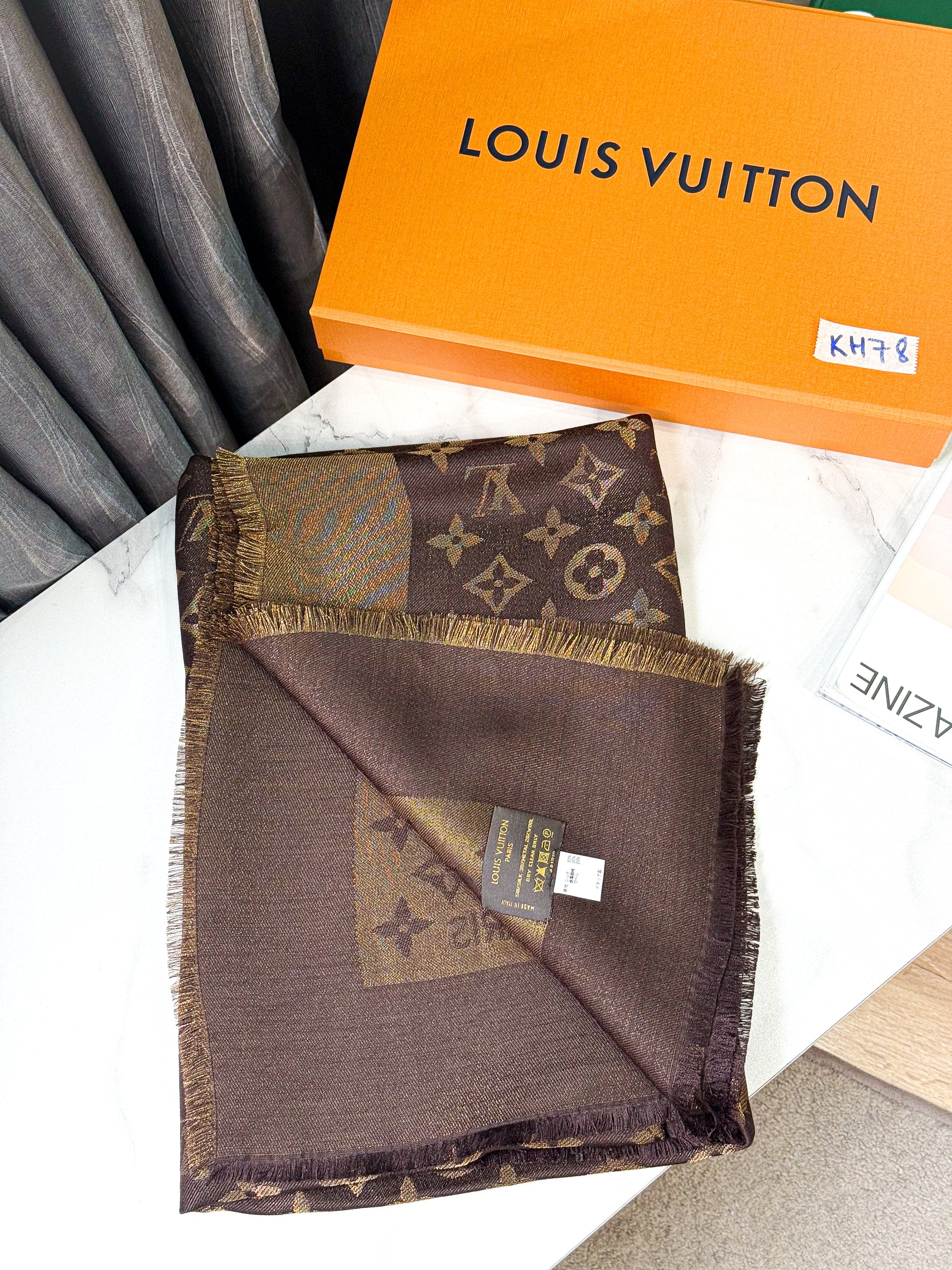 Khăn LV Nâu Ánh Kim KH78 16/12