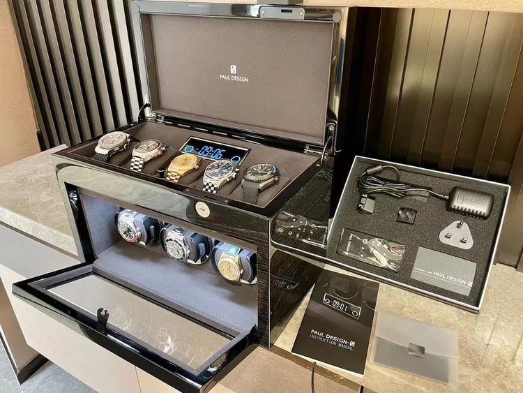 Thiết kế độc đáo,chế tác tỉ mỉ từ những vật liệu cao cấp như gỗ siêu chống ẩm, động cơ tối tân, màn hình cảm ứng, gối quay tân tiến nhất thế giới. Chương trình điều khiển thông minh với nhiều chế độ hoạt động linh hoạt giúp cho tủ quay của Paul Design có khả năng tương thích với các loại đồng hồ cơ trên thế giới.