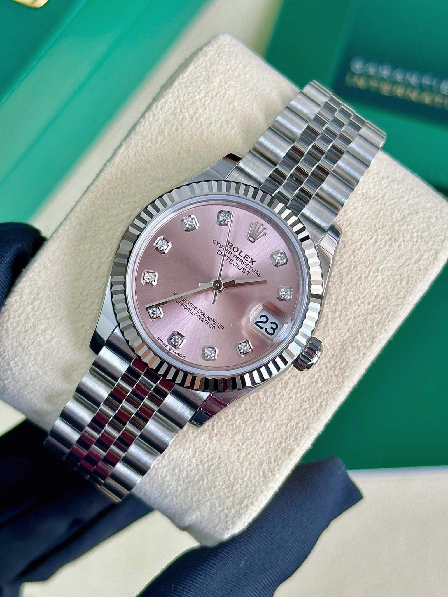 RL Datejust 278274 cọc số kim cương mặt pink size 31mm new fullbox 2024 💵 3xx tr