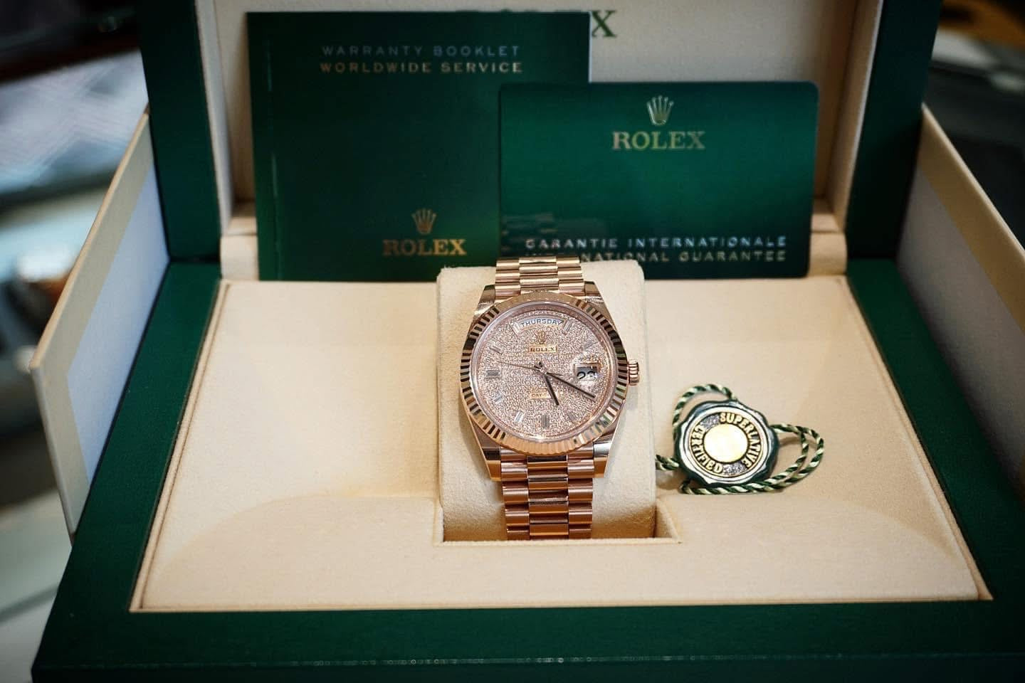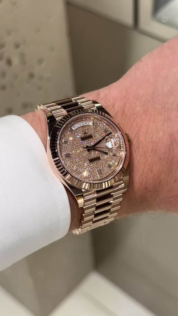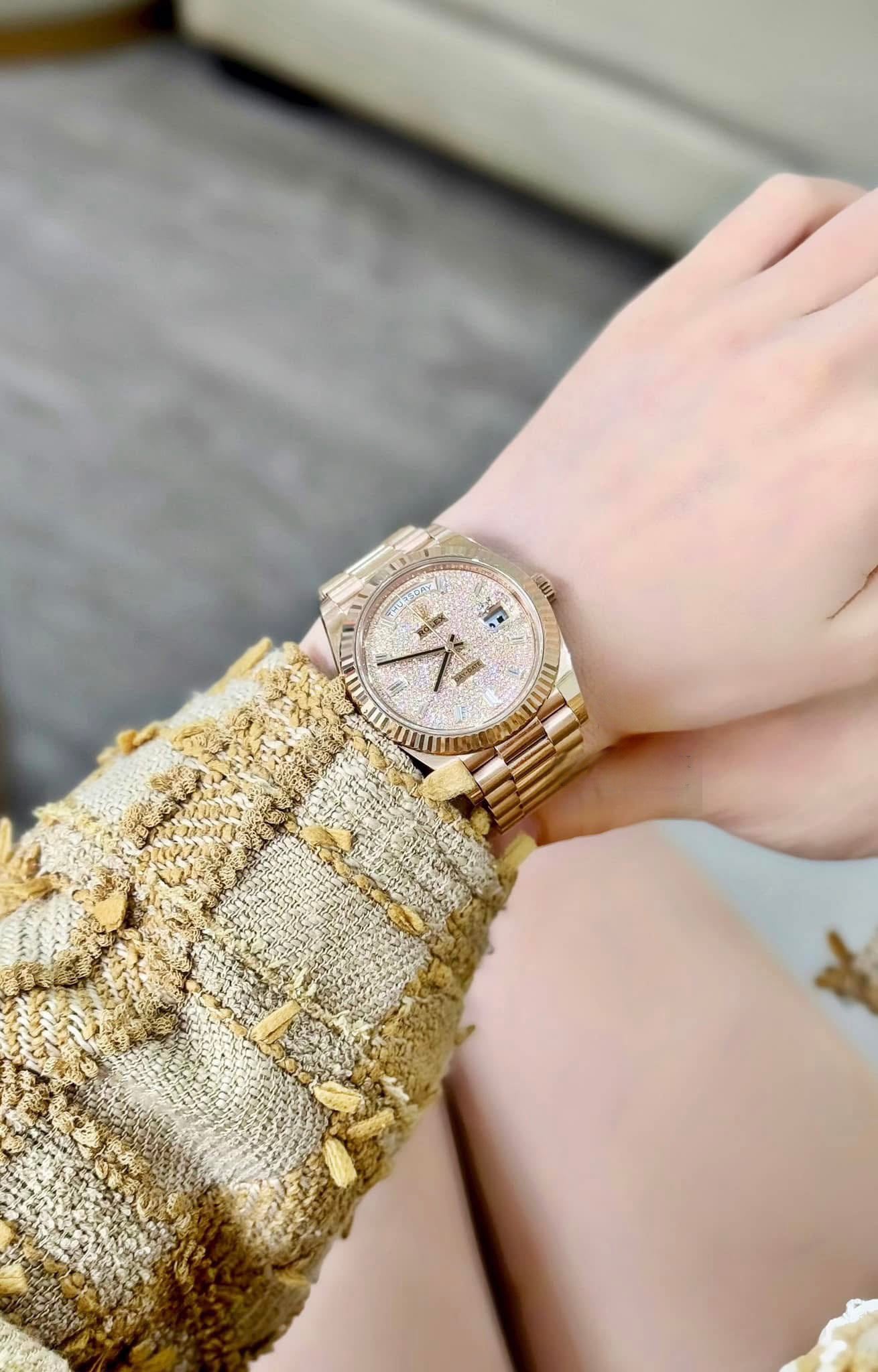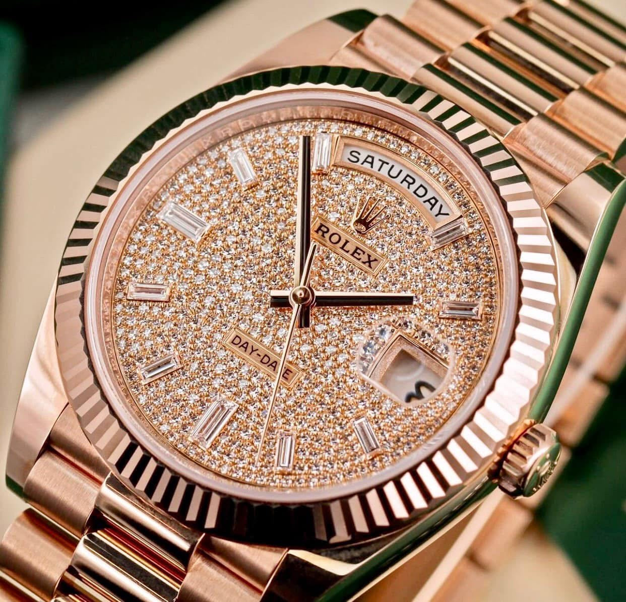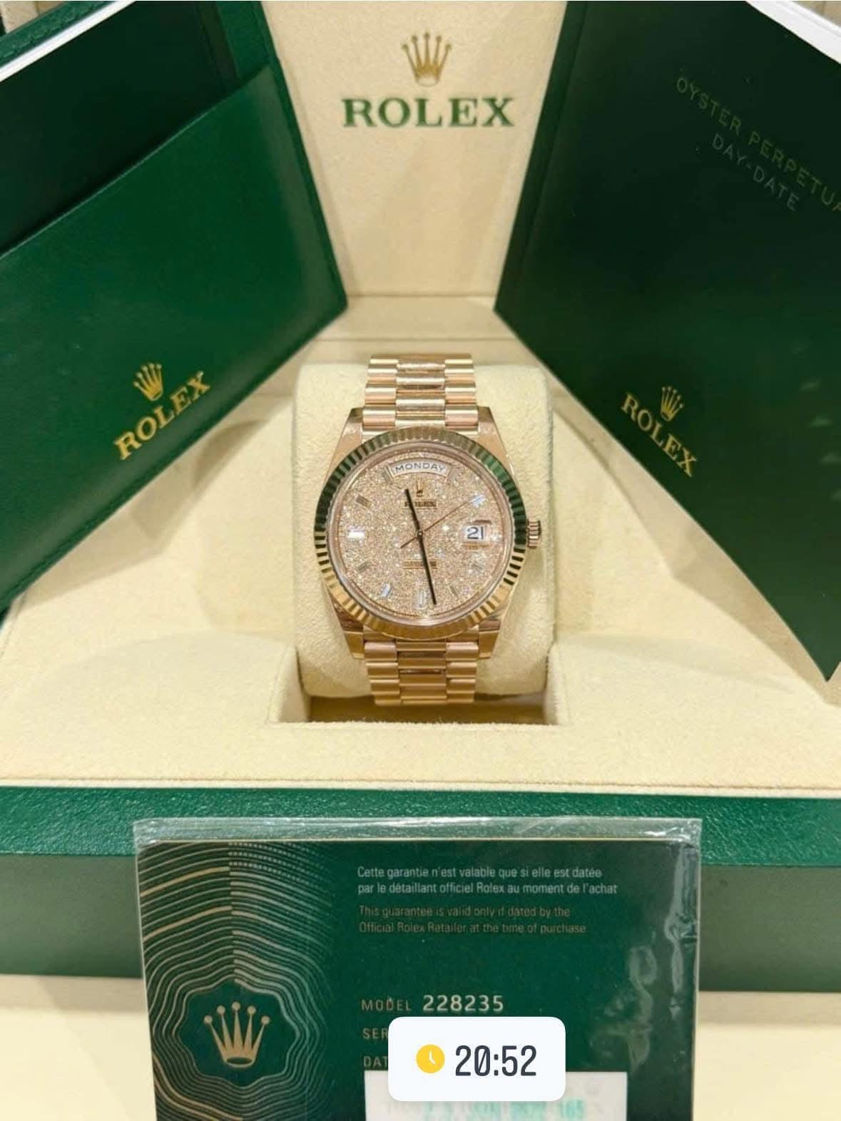Một chiếc RL Daydate 228235 vàng khối full kim cương, cọc số kim cương ống đỉnh chóp 💎