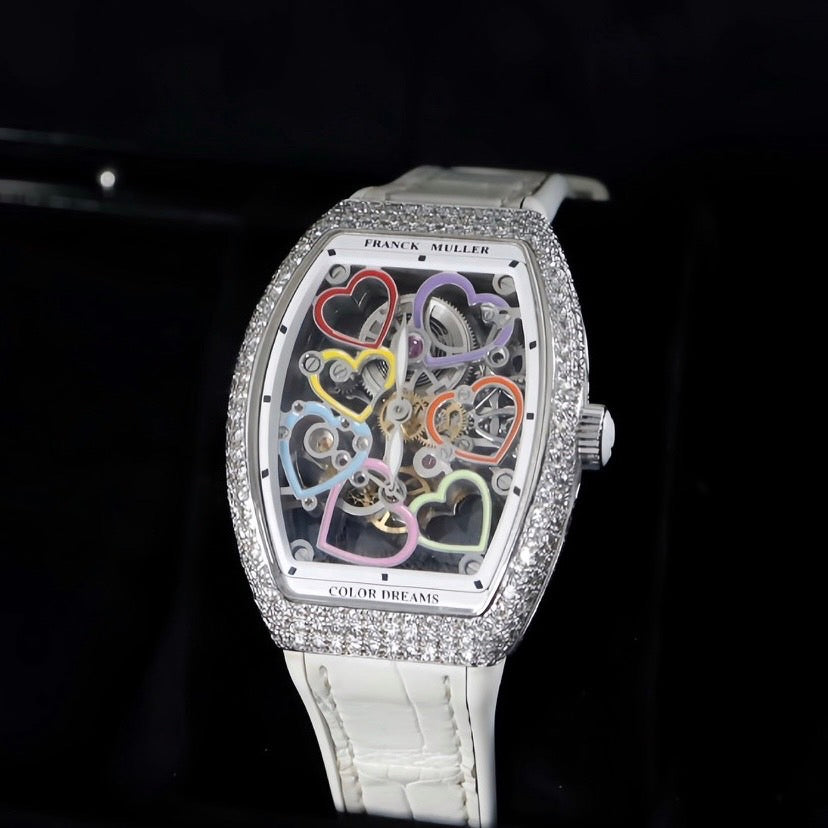 Đồng Hồ Frank Muller V32 Skeleton Diamond Flower White