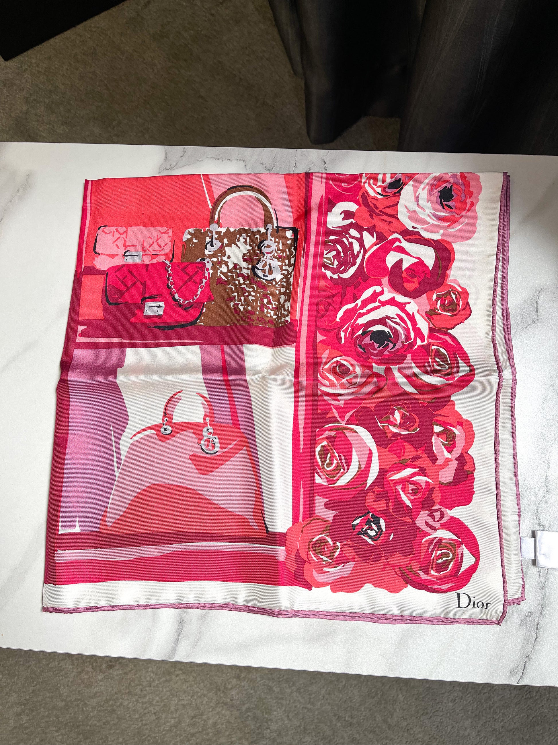 Khăn lụa Di.or khổ 70x70 hoạ tiết các mẫu túi đặc trưng của hãng lun❤️