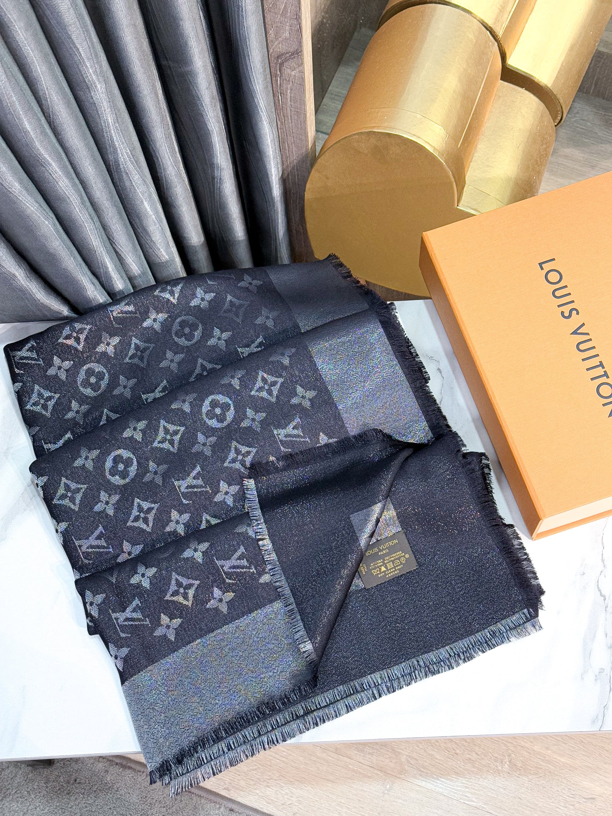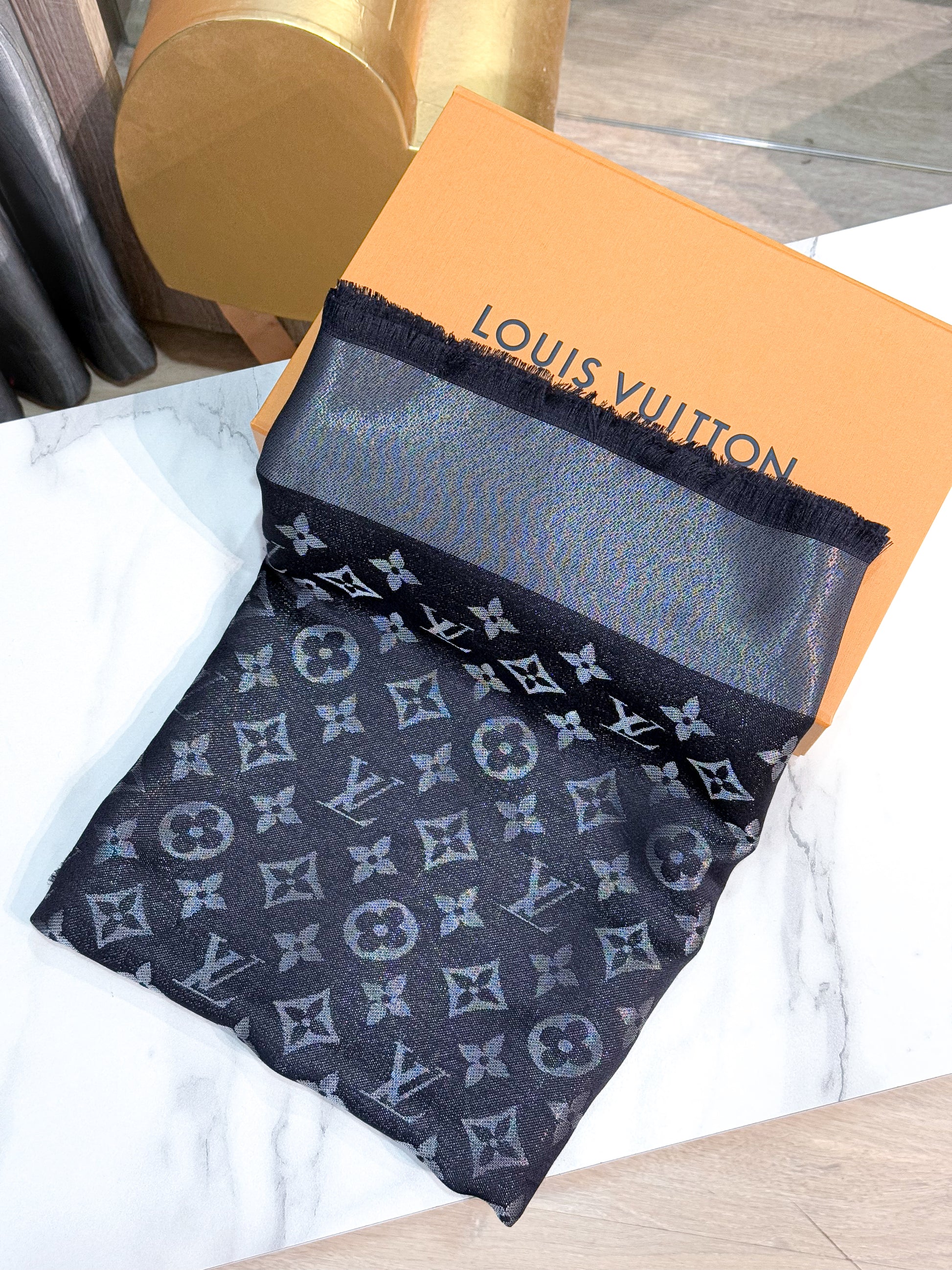 Khăn LV Ánh Kim Đen 28/2