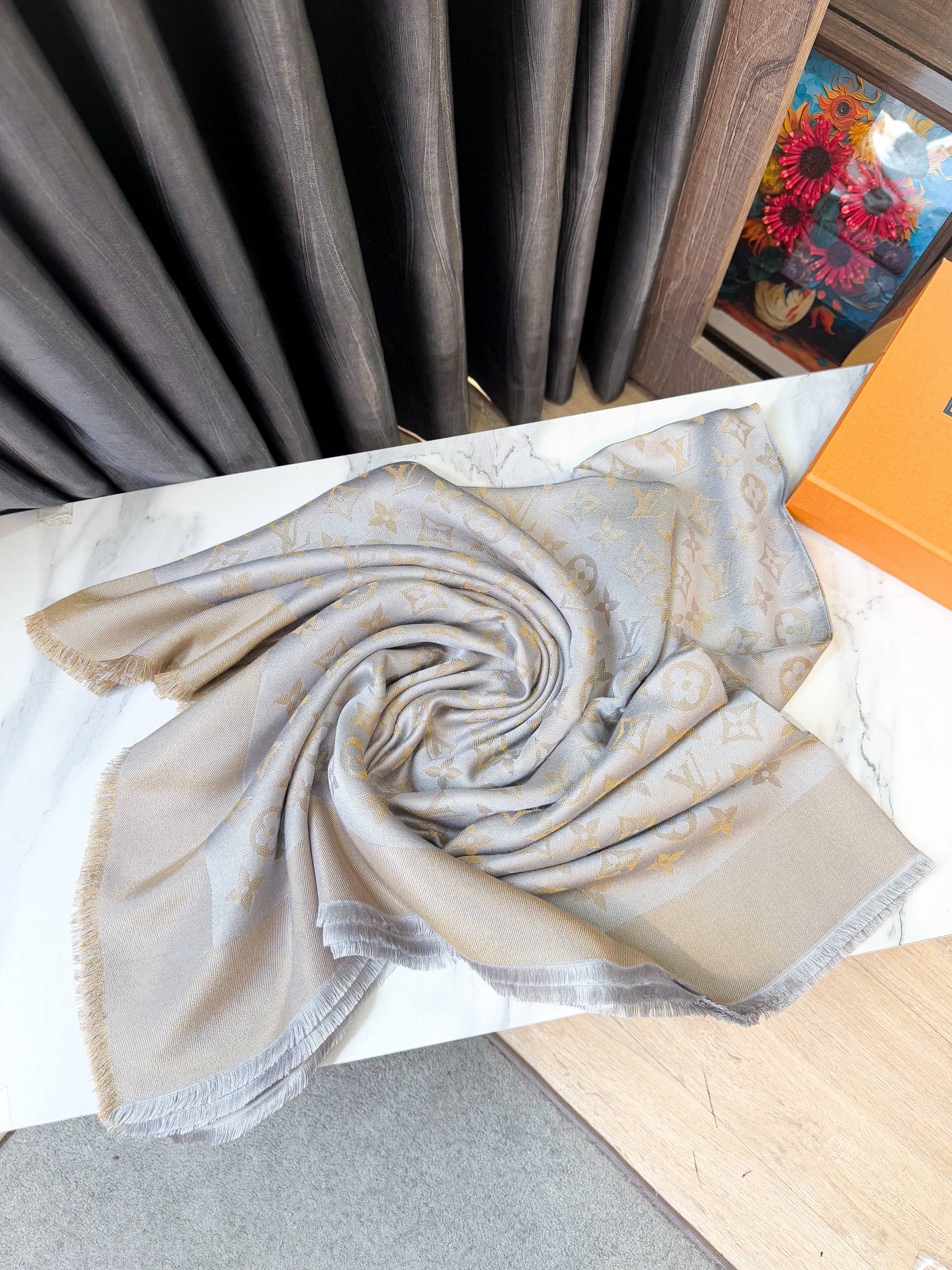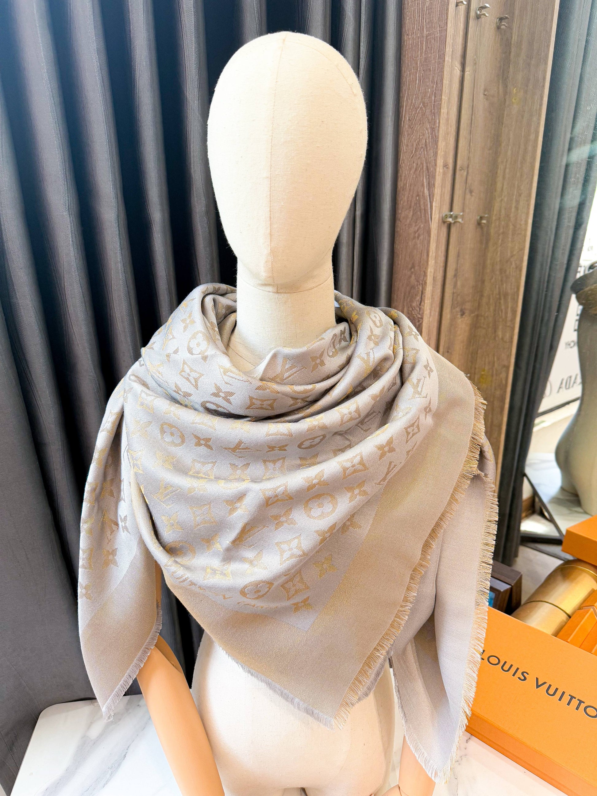 Khăn LV Ánh Kim Ghi Vàng 12/5