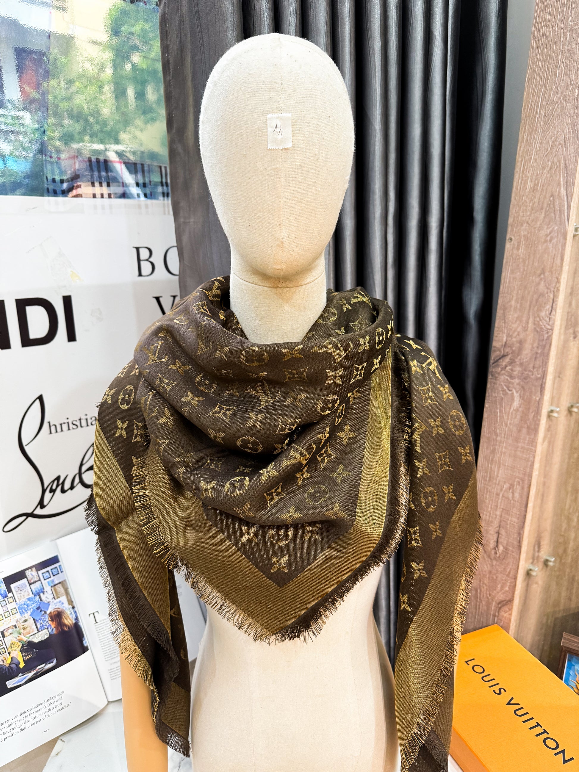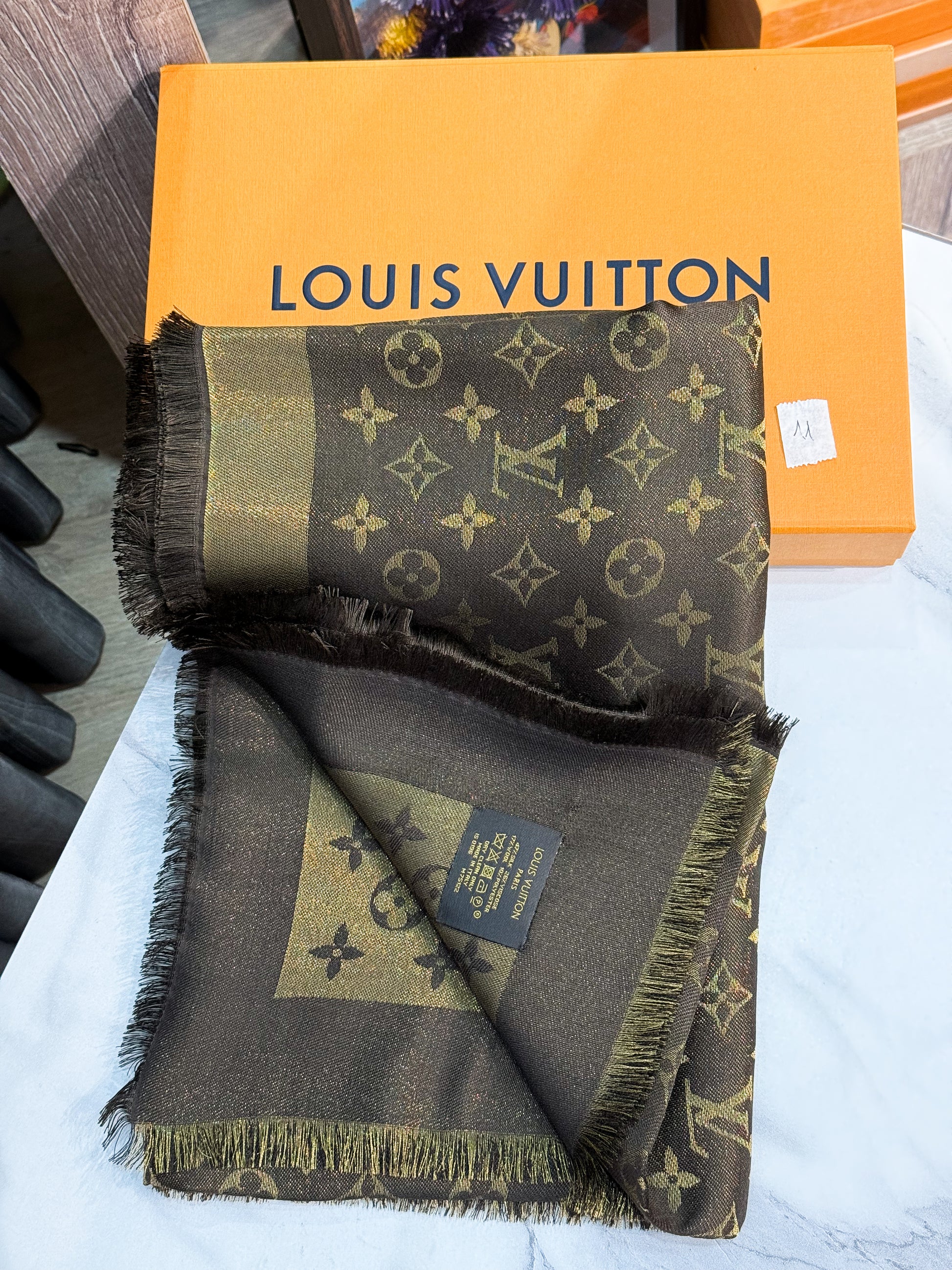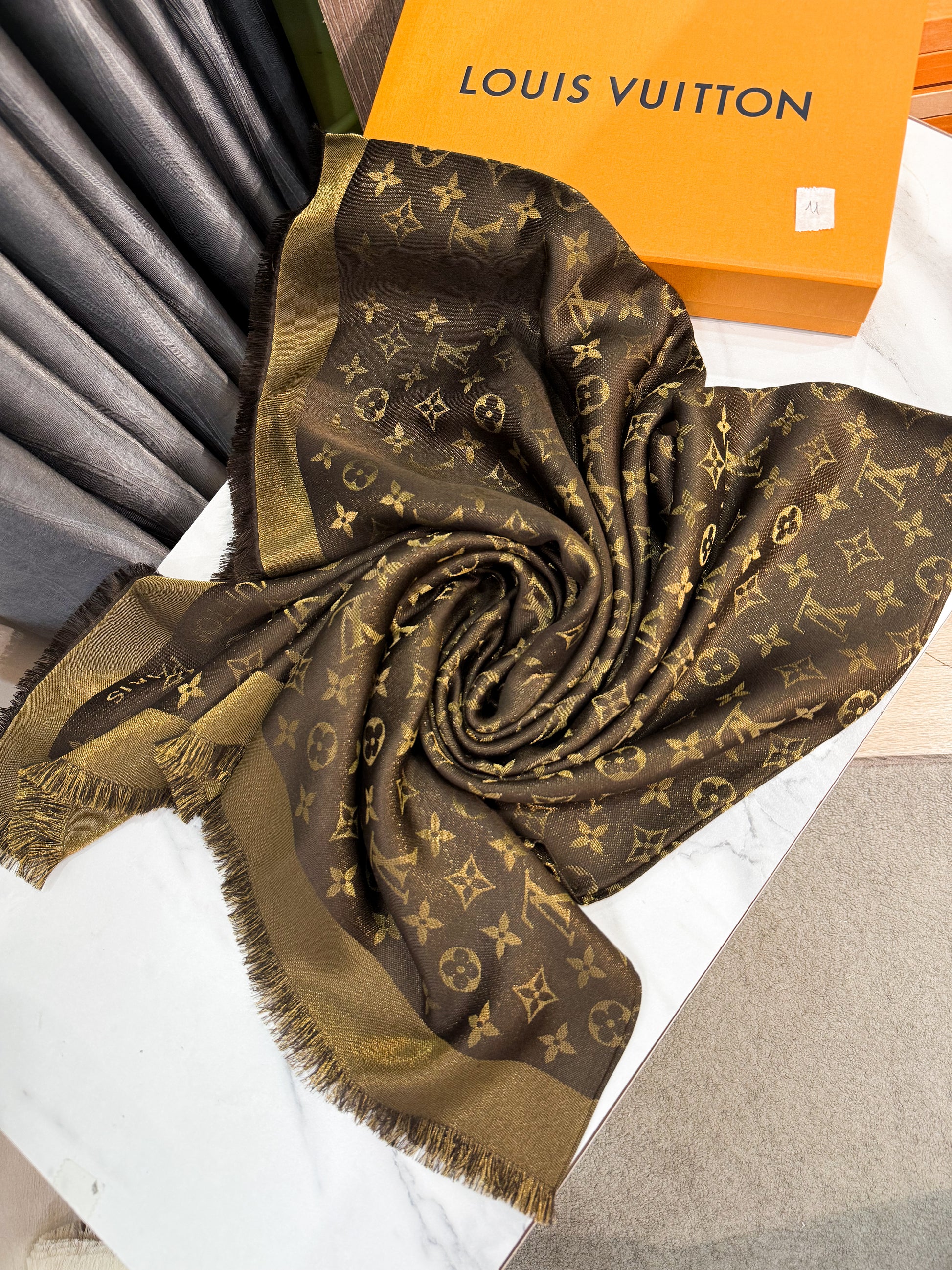 Khăn LV Ánh Kim Nâu KH11