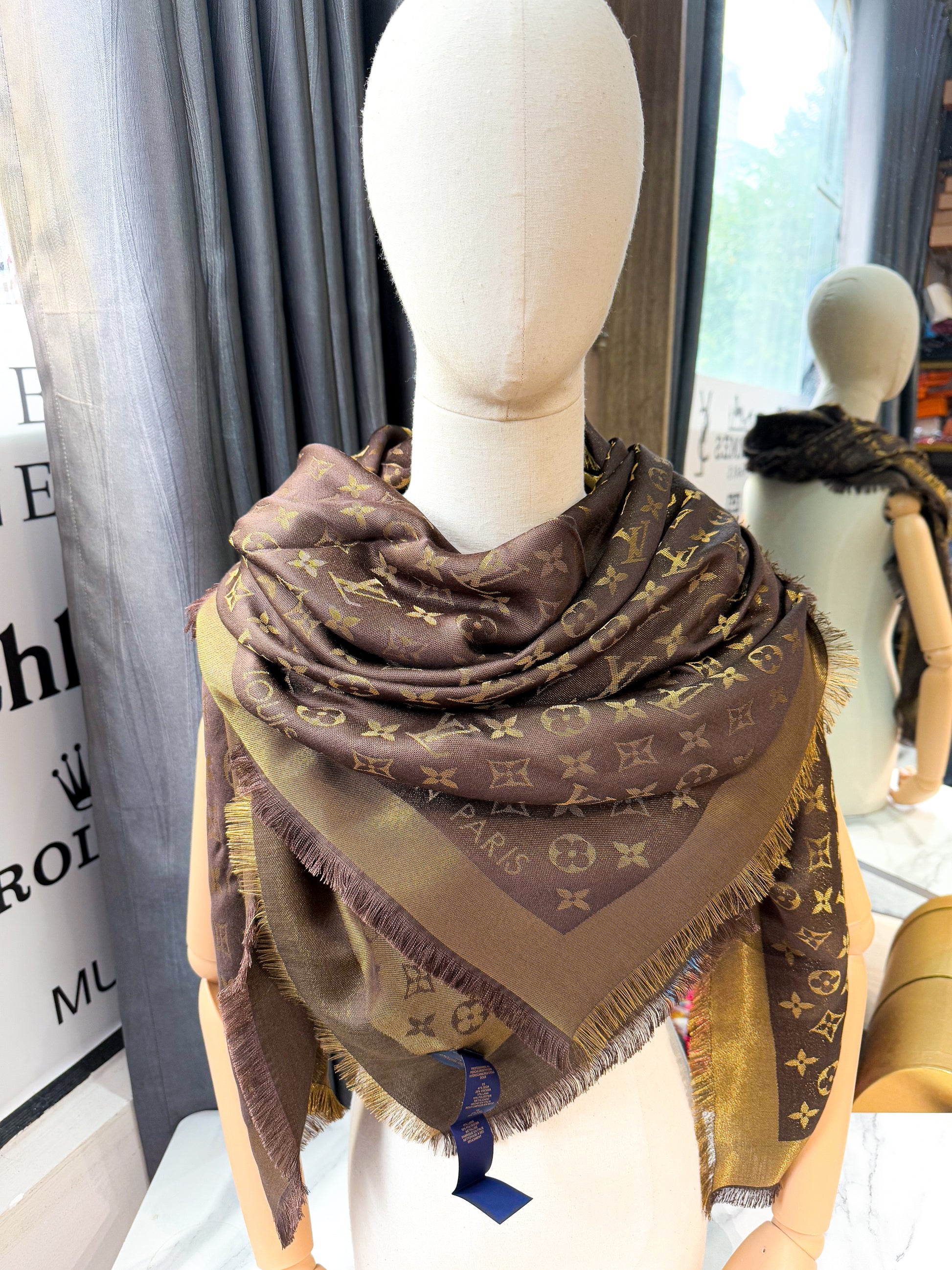 Khăn lệ vi nâu ánh kim new kèm box đi tặng đẹp ghê