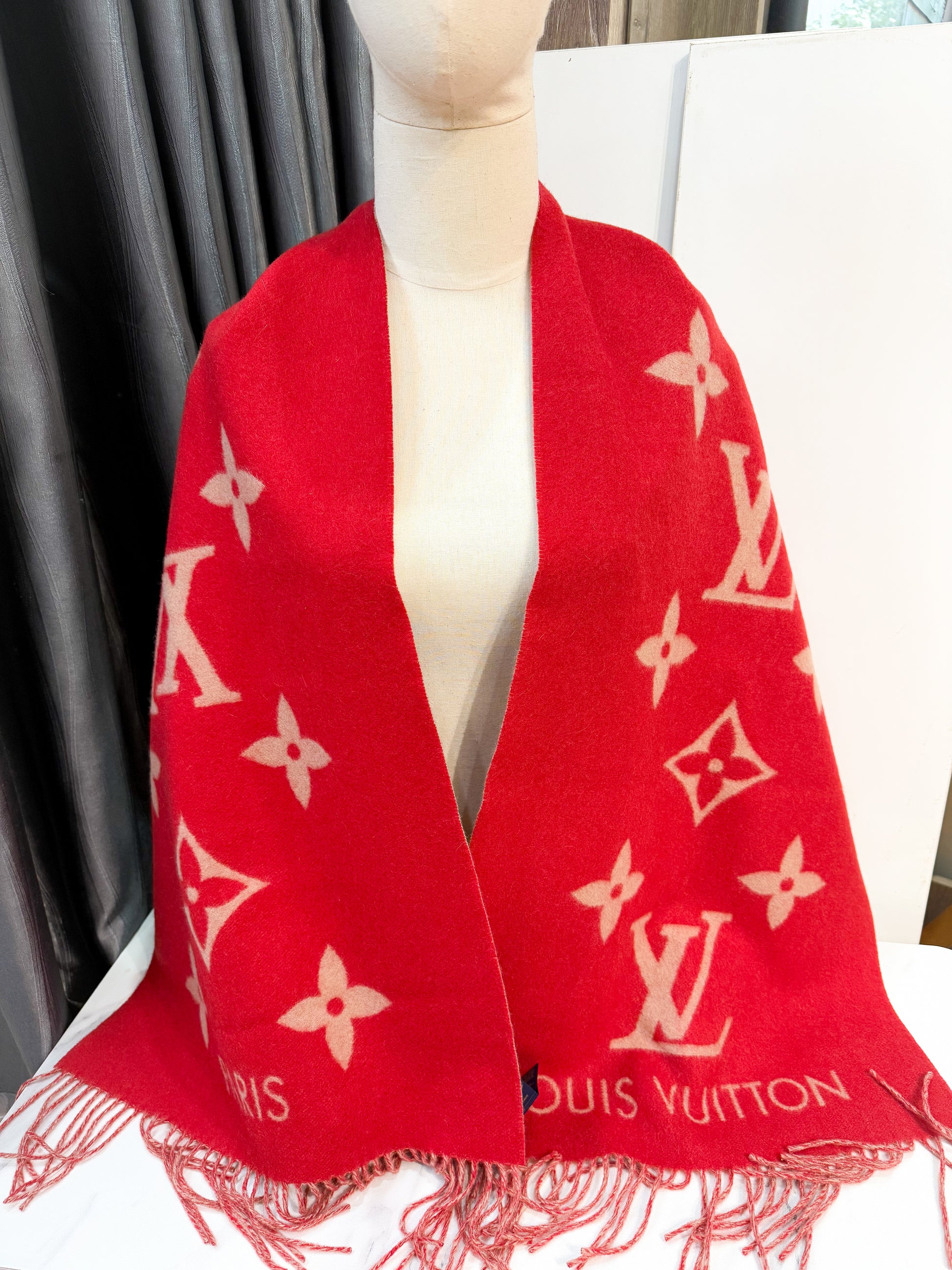 Khăn cashmere hàng trưng bày kèm box tone đỏ đẹp ghê ce uii
