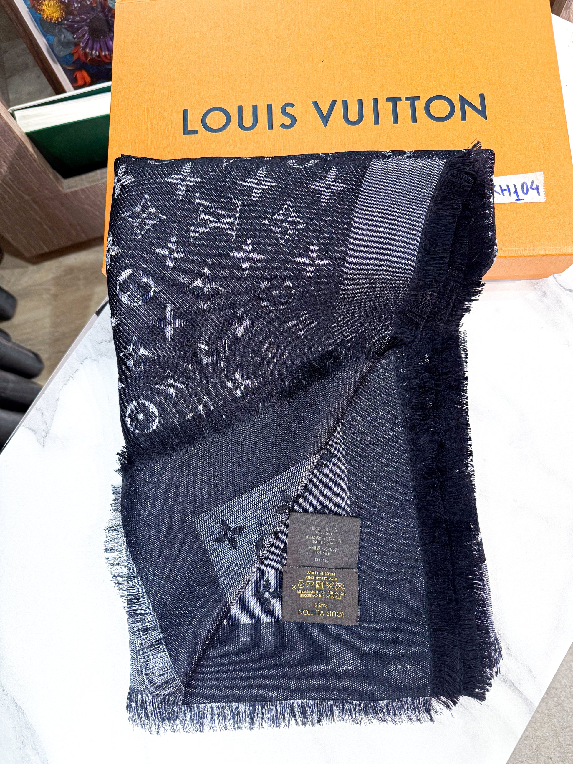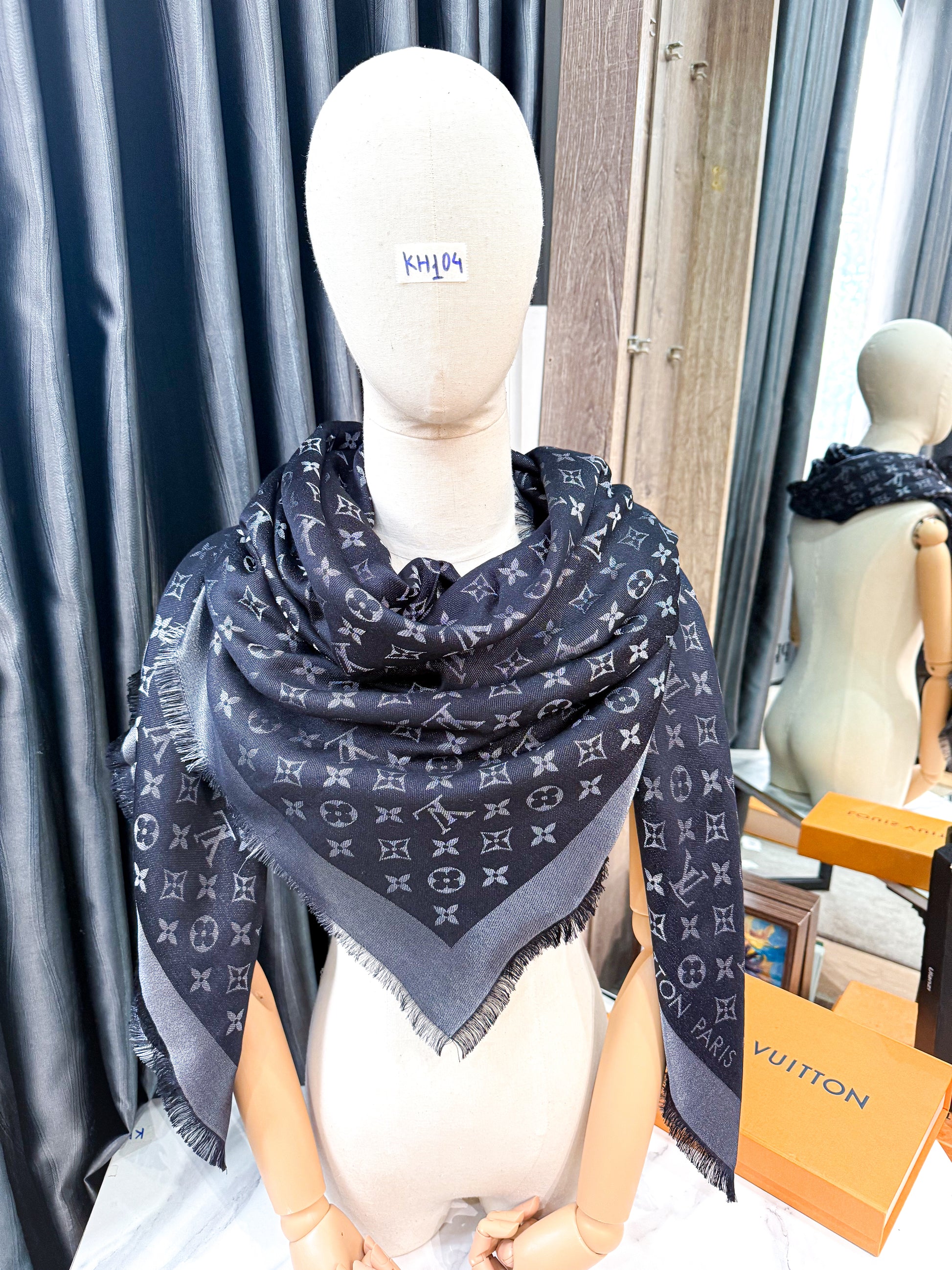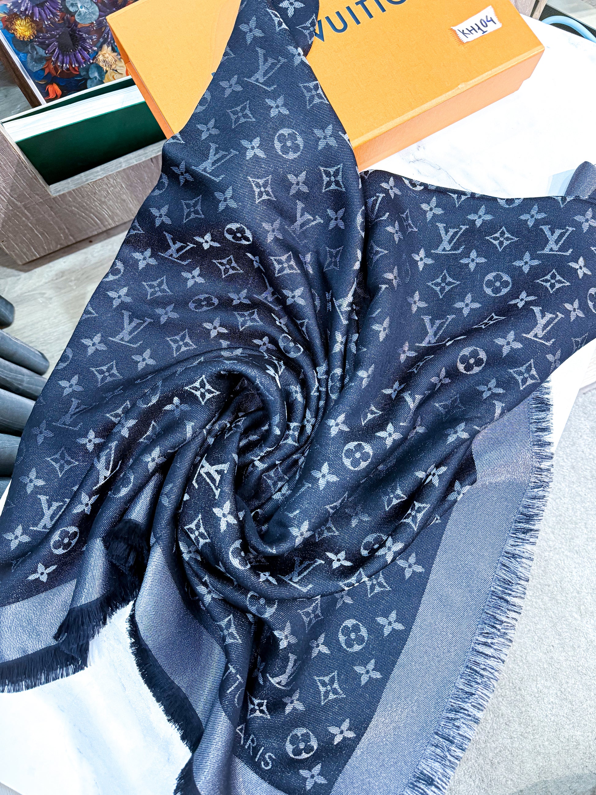 Khăn LV Đen Ánh Kim KH104