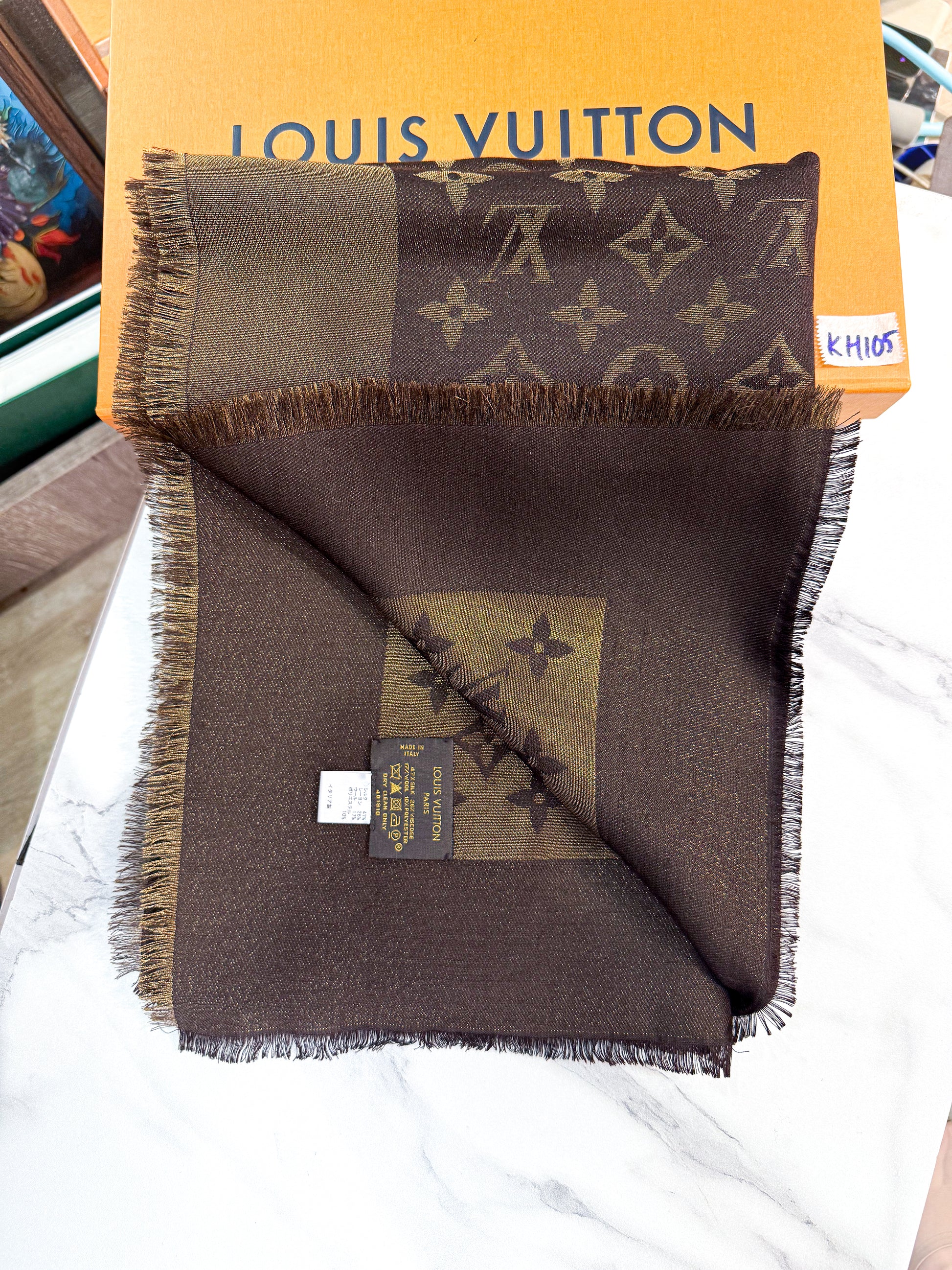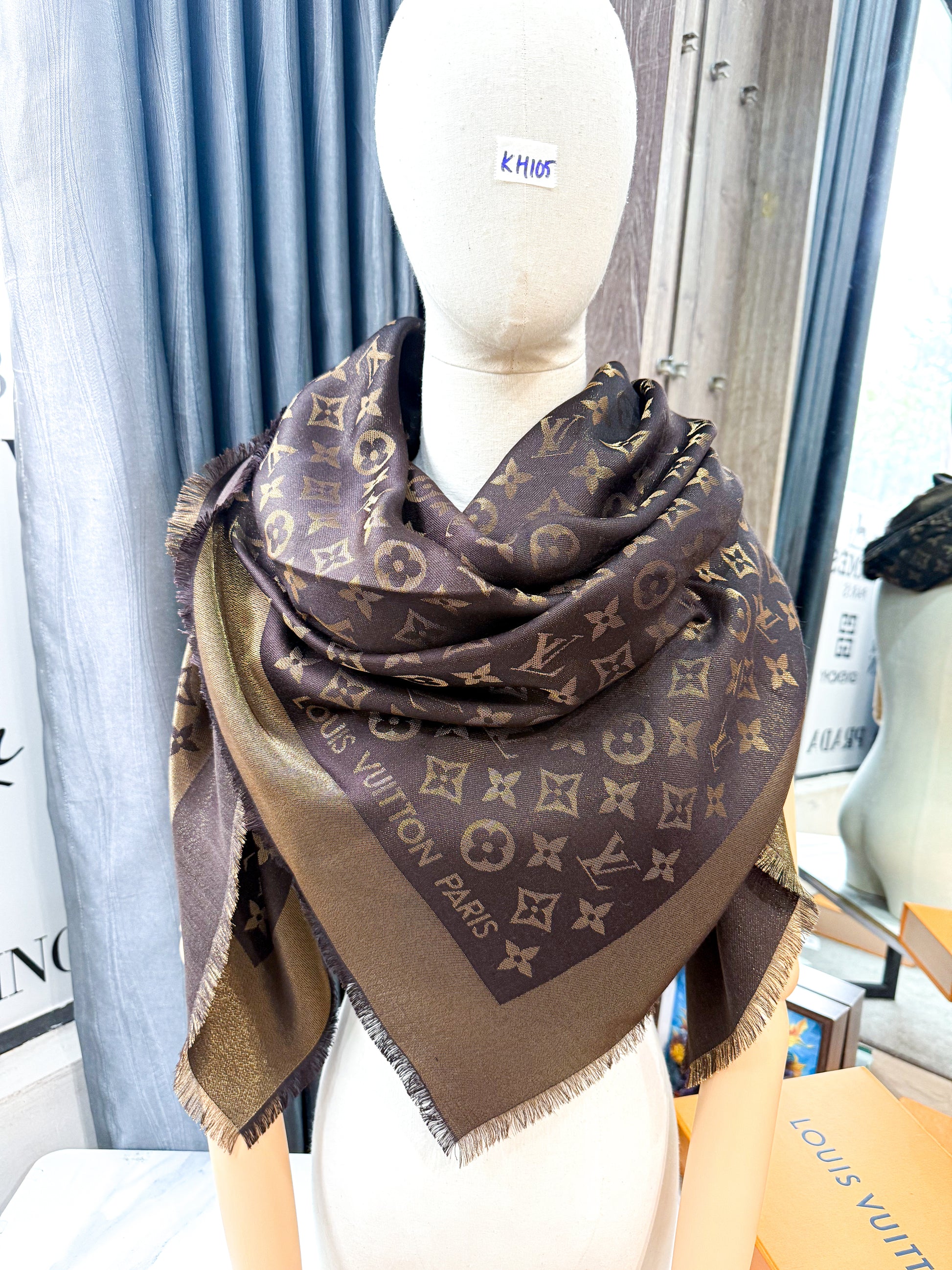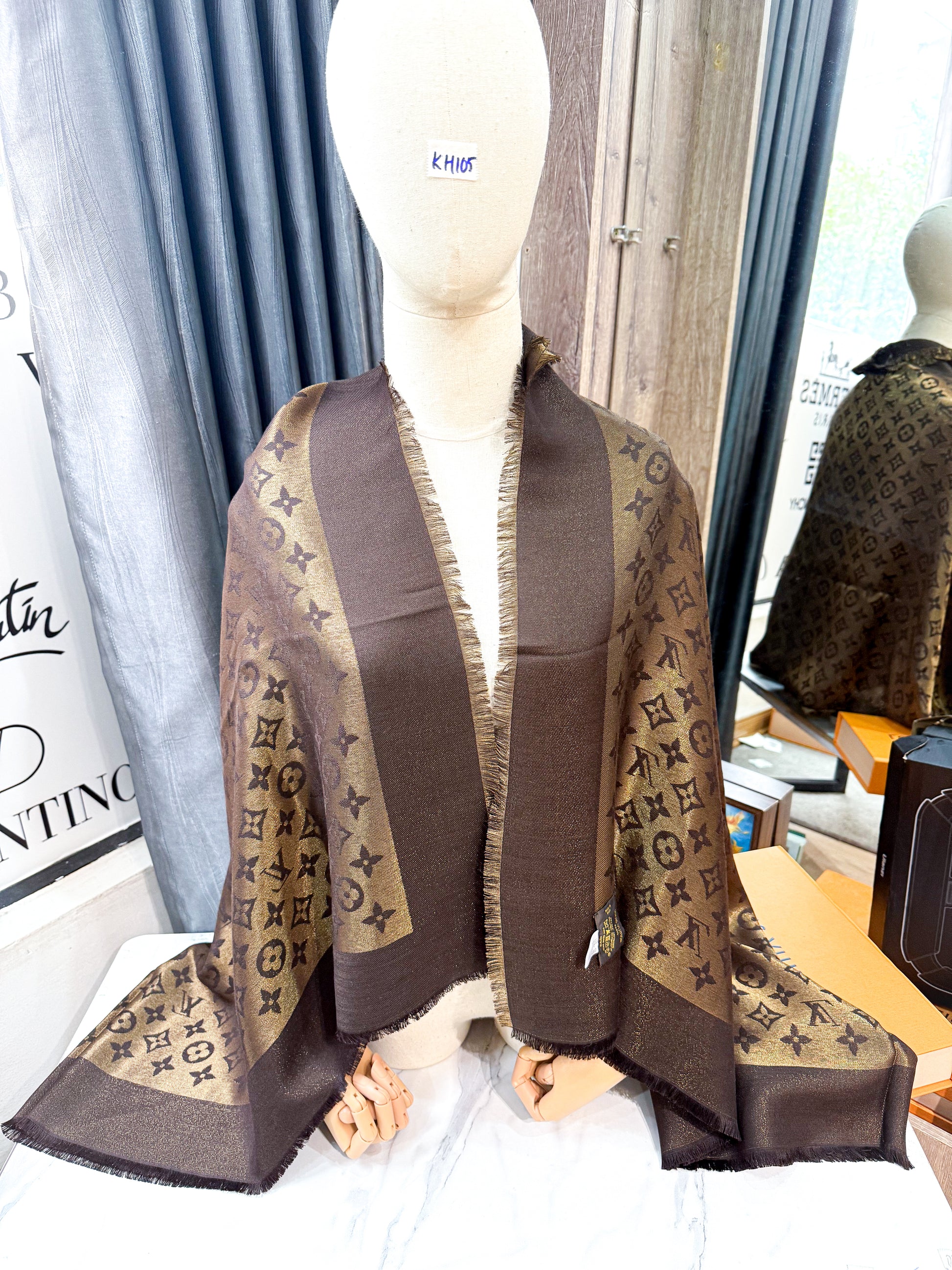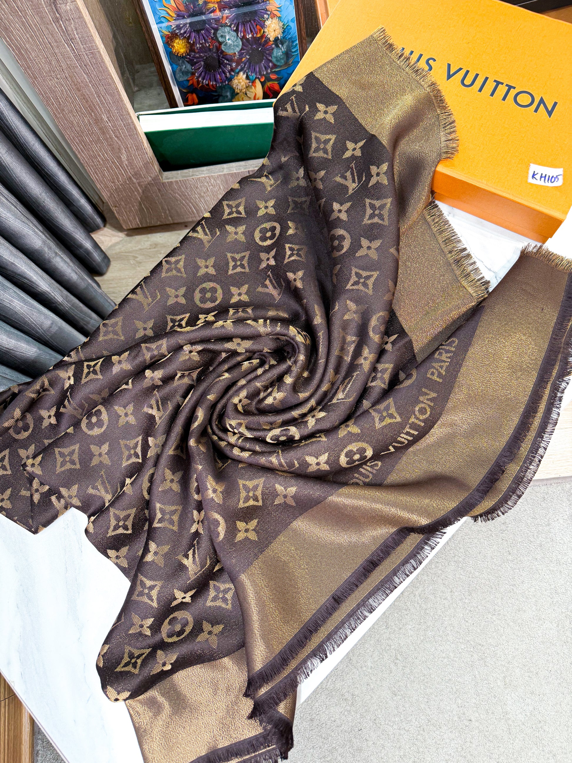 Khăn LV Nâu Ánh Kim KH105